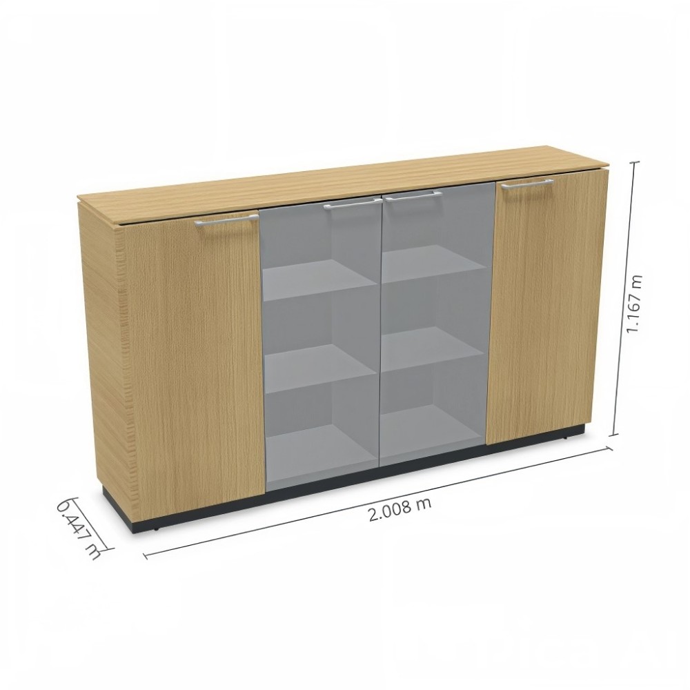 Armoire bibliothèque, 2 portes battantes + 2 portes vitrées transparentes