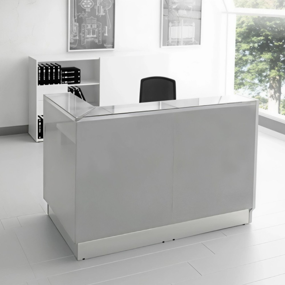 Élégante et moderne, la banque d’accueil Linea avec 1 angle et un côté ouvert allie design raffiné et praticité. Sa façade en verre rehaussée par une plinthe aluminium brossé et son éclairage LED intégré créent un accueil professionnel et lumineux. Adaptée aux bureaux, cabinets médicaux, administrations et hôtels, elle garantit une réception accueillante et fonctionnelle.