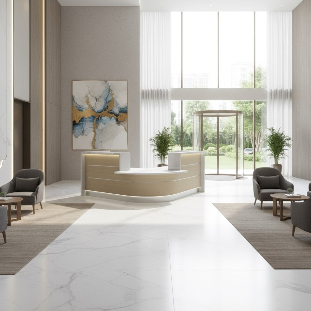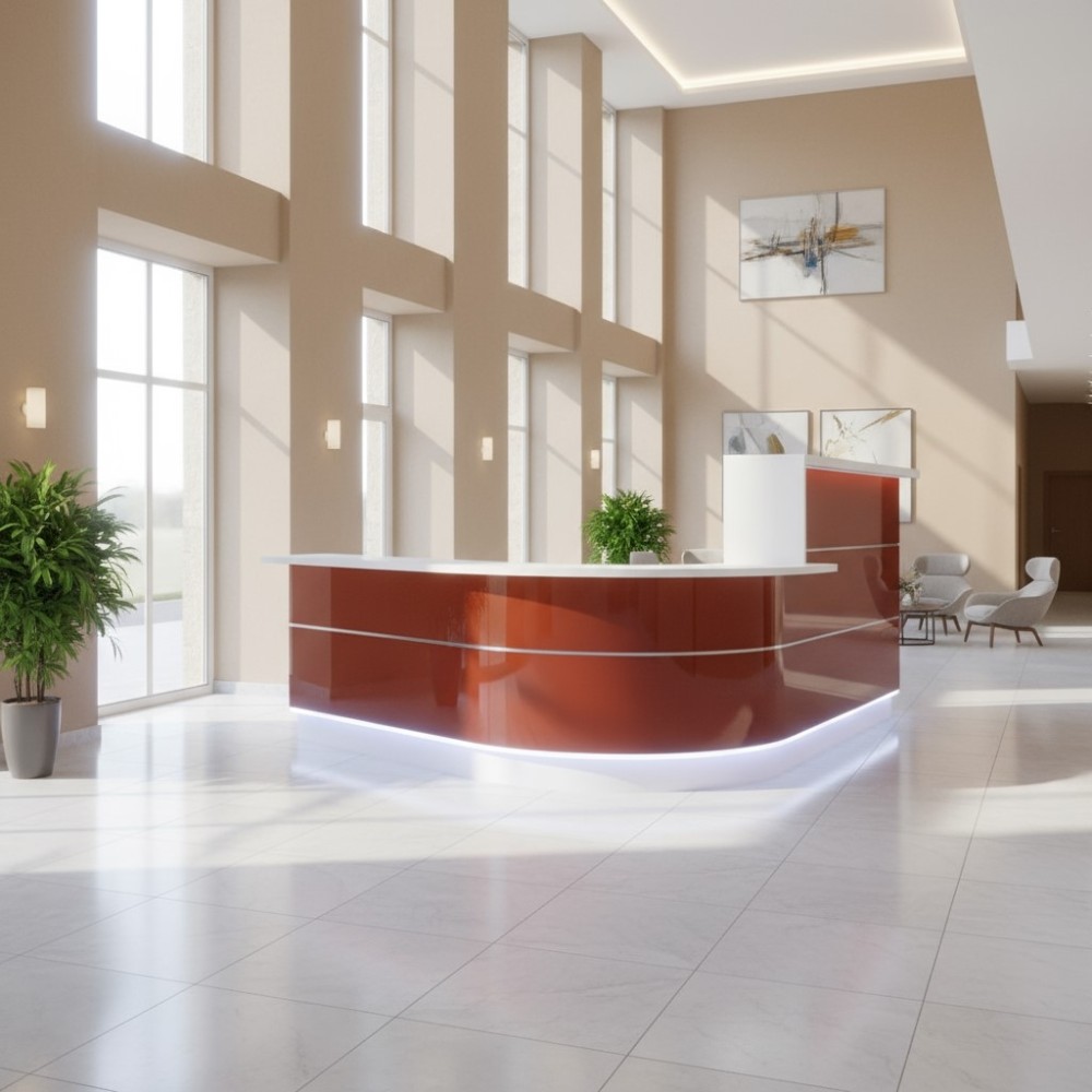 - Design d’angle arrondi idéal pour les espaces d’accueil contemporains.