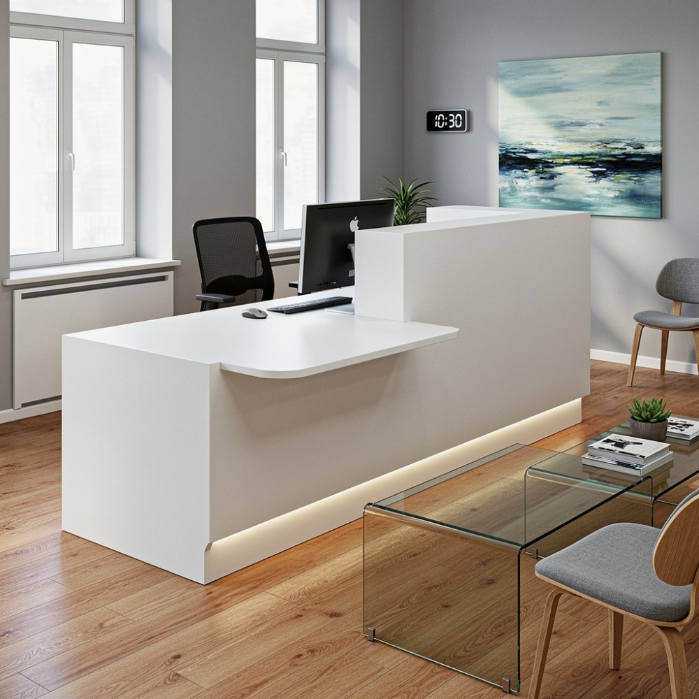 Le comptoir Linea incarne l’équilibre parfait entre design, accessibilité et fonctionnalité. Son style universel s’intègre aussi bien dans des bureaux contemporains que dans des espaces plus classiques. Ses finitions soignées et ses multiples coloris offrent une liberté de personnalisation totale.