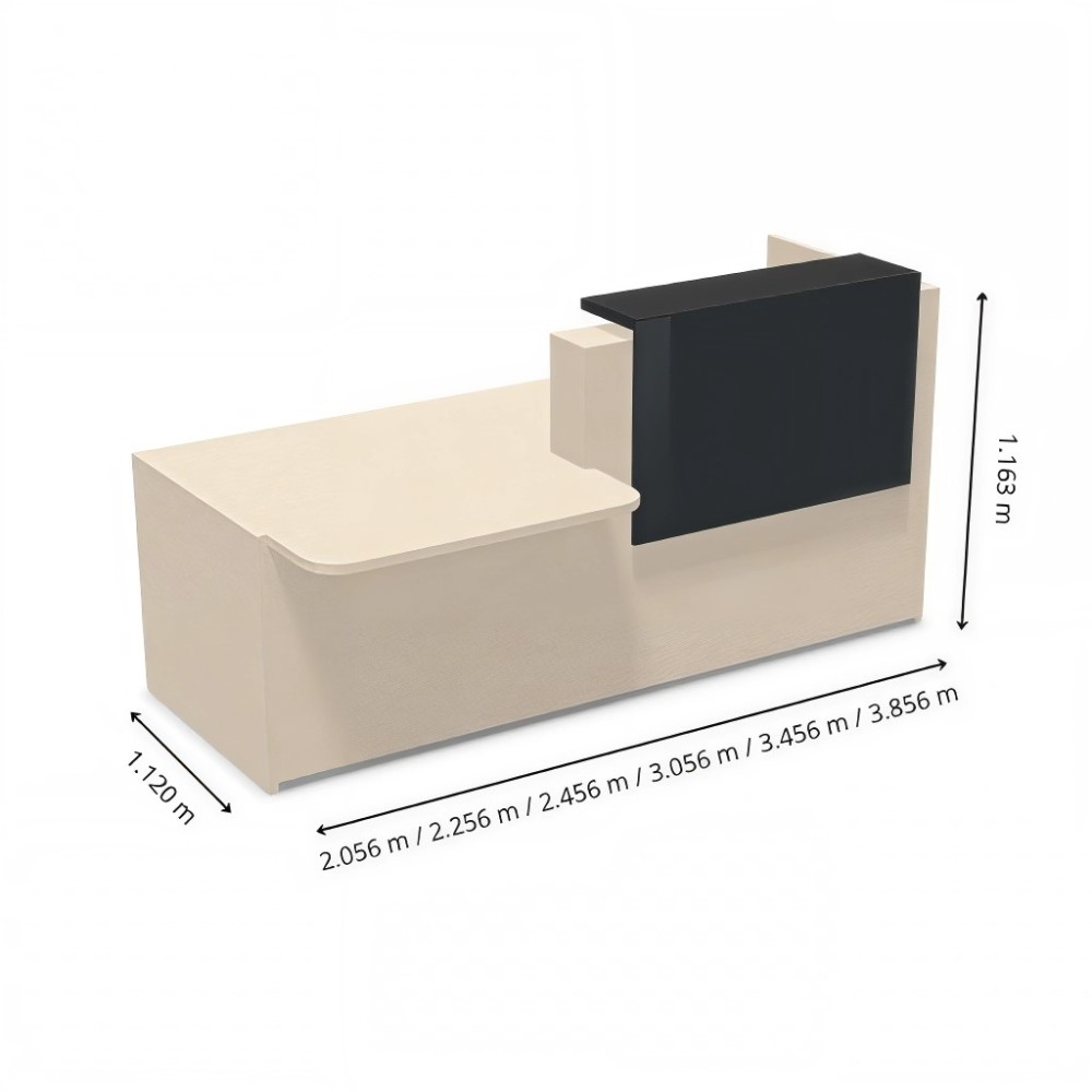 La réhausse en HPL et verre confère un style raffiné et représentatif. L’éclairage LED crée une atmosphère accueillante et met en valeur ton espace d’accueil. Un côté plus bas à droite est intégré pour garantir une accessibilité PMR, afin de recevoir tous les visiteurs dans les meilleures conditions.
