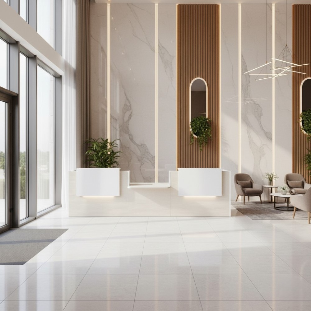 Le meuble de réception Tera avec double réhausse et LED offre une combinaison parfaite entre élégance, modularité et accessibilité universelle. Grâce à son installation clé en main avec livraison et montage inclus, tu bénéficies d’un service complet et d’un mobilier durable.