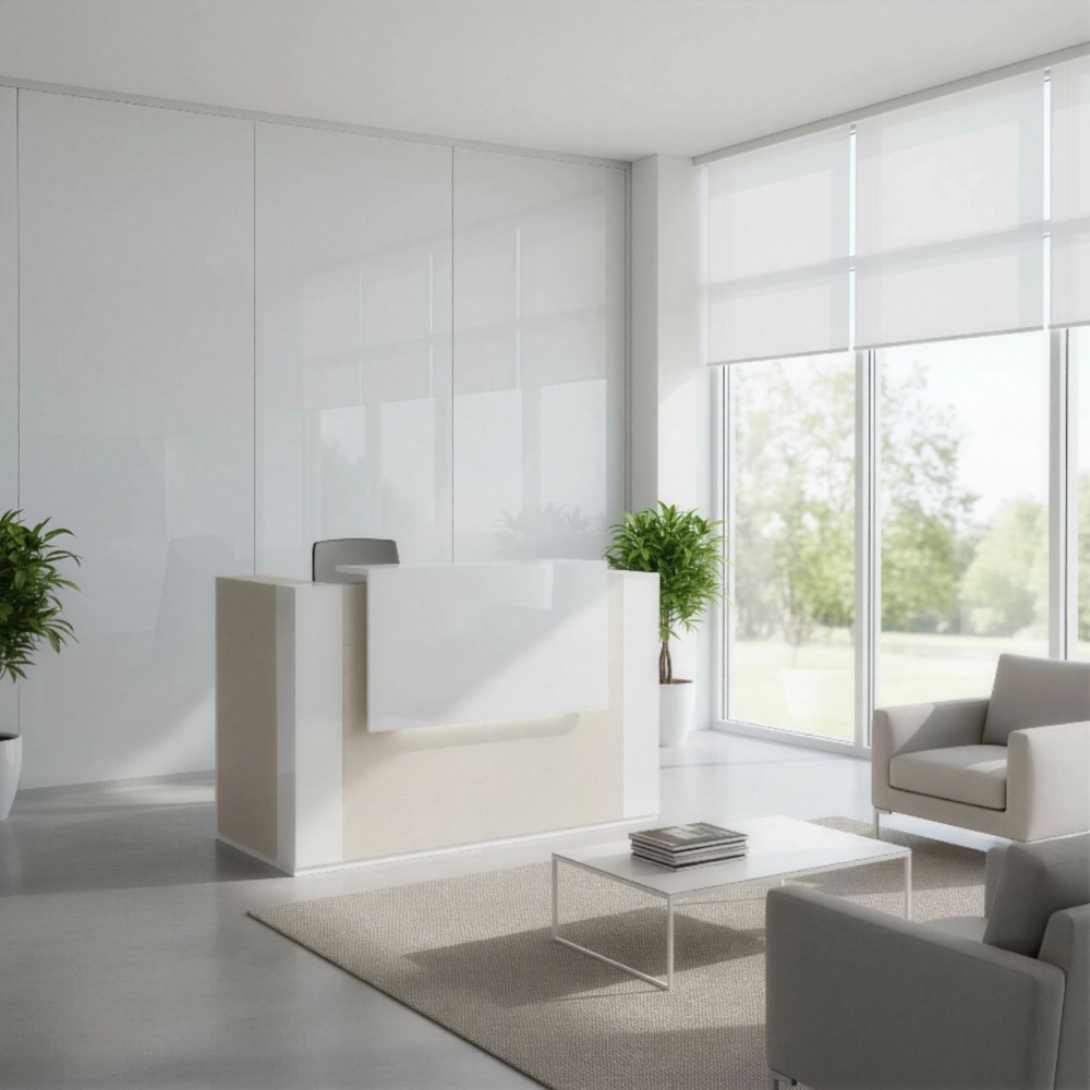 La banque d’accueil Tera associe élégance, modernité et modularité. Avec sa réhausse centrale en HPL brillant et verre, son éclairage LED intégré et ses poteaux d’angle en stratifié, elle met en valeur ton espace d’accueil tout en offrant confort et praticité. Conçue pour les cabinets médicaux, entreprises, hôtels et administrations, elle garantit une première impression professionnelle et accueillante.