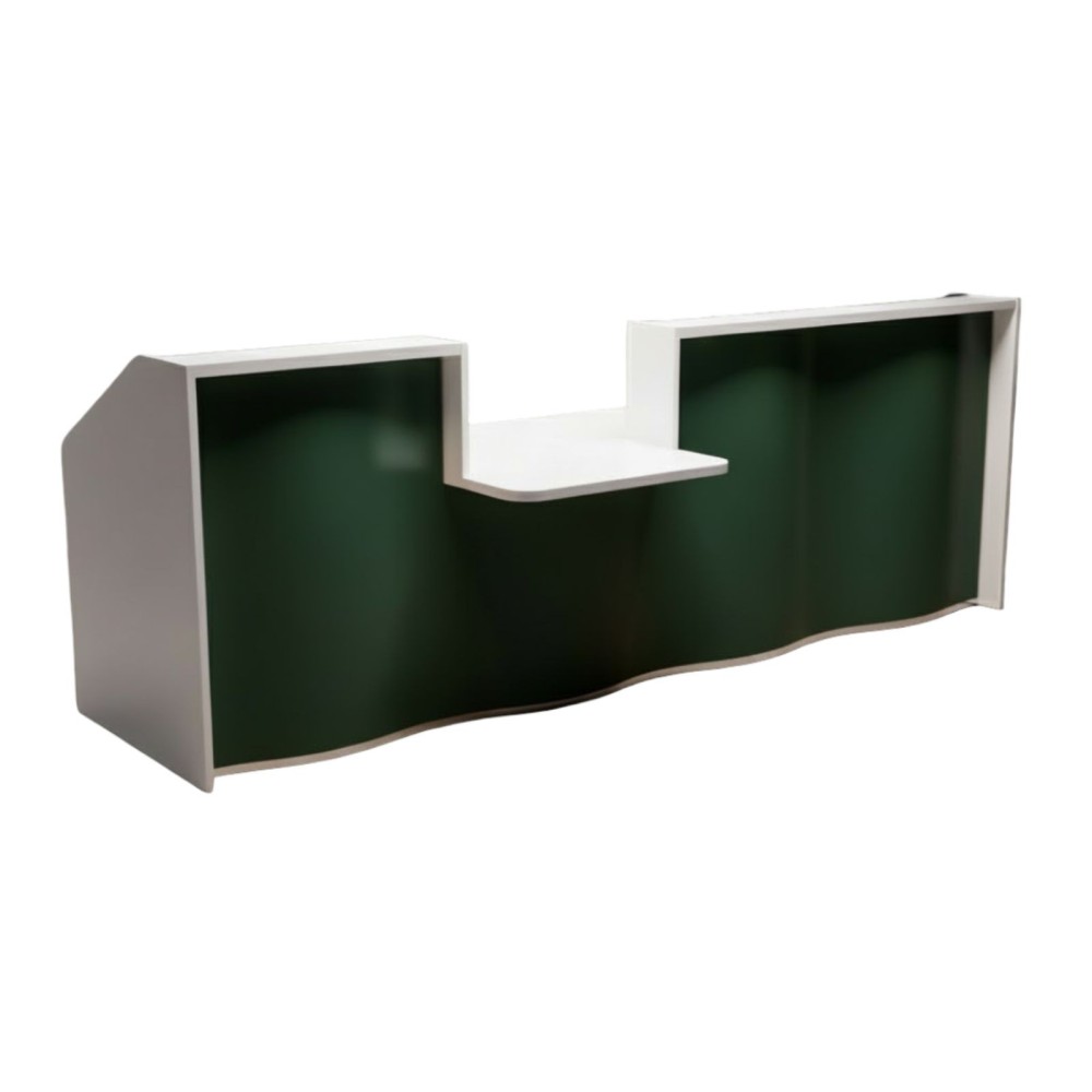 La banque d’accueil Wave séduit par sa façade ondulée en stratifié HPL brillant et son espace central plus bas avec tablette intégrée. Conçue pour les cabinets médicaux, hôtels et administrations, elle combine design audacieux, accessibilité et praticité pour offrir une première impression élégante et accueillante.