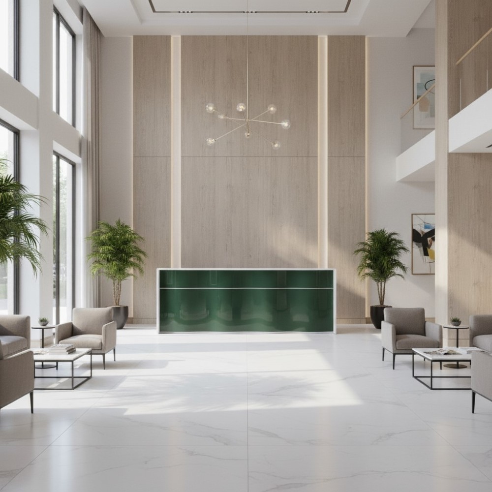 La banque d’accueil Wave séduit par son design contemporain et sa façade ondulée en HPL brillant ou mat. Élégante et fonctionnelle, elle constitue un choix idéal pour les cabinets médicaux, hôtels et administrations souhaitant offrir une première impression moderne et professionnelle.