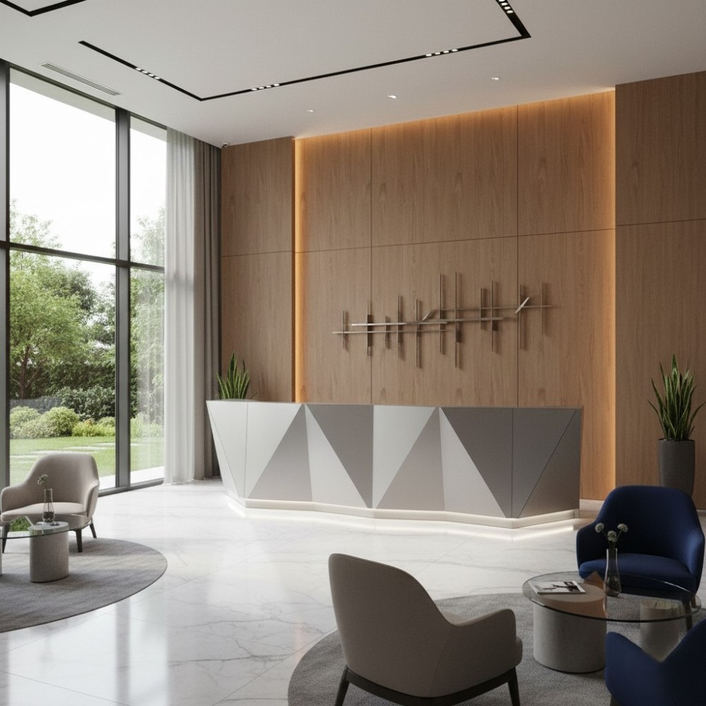 La banque d’accueil Alpa est plus qu’un meuble fonctionnel : c’est une pièce architecturale qui transforme ton espace d’accueil en un lieu prestigieux. Son design géométrique en verre facetté 3D, associé à un socle lumineux discret, attire instantanément le regard et crée une atmosphère élégante et moderne. Conçue pour impressionner dès le premier contact, elle est idéale pour les bureaux, hôtels, administrations et cabinets médicaux.