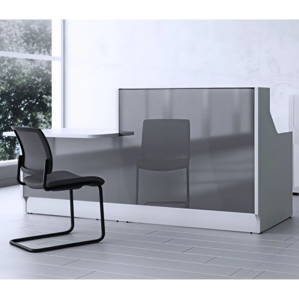 Sa forme droite et son module bas PMR offrent un accès facile aux personnes à mobilité réduite. La tablette intégrée facilite les échanges avec les visiteurs, tout en préservant une ergonomie de travail optimale pour l’utilisateur.