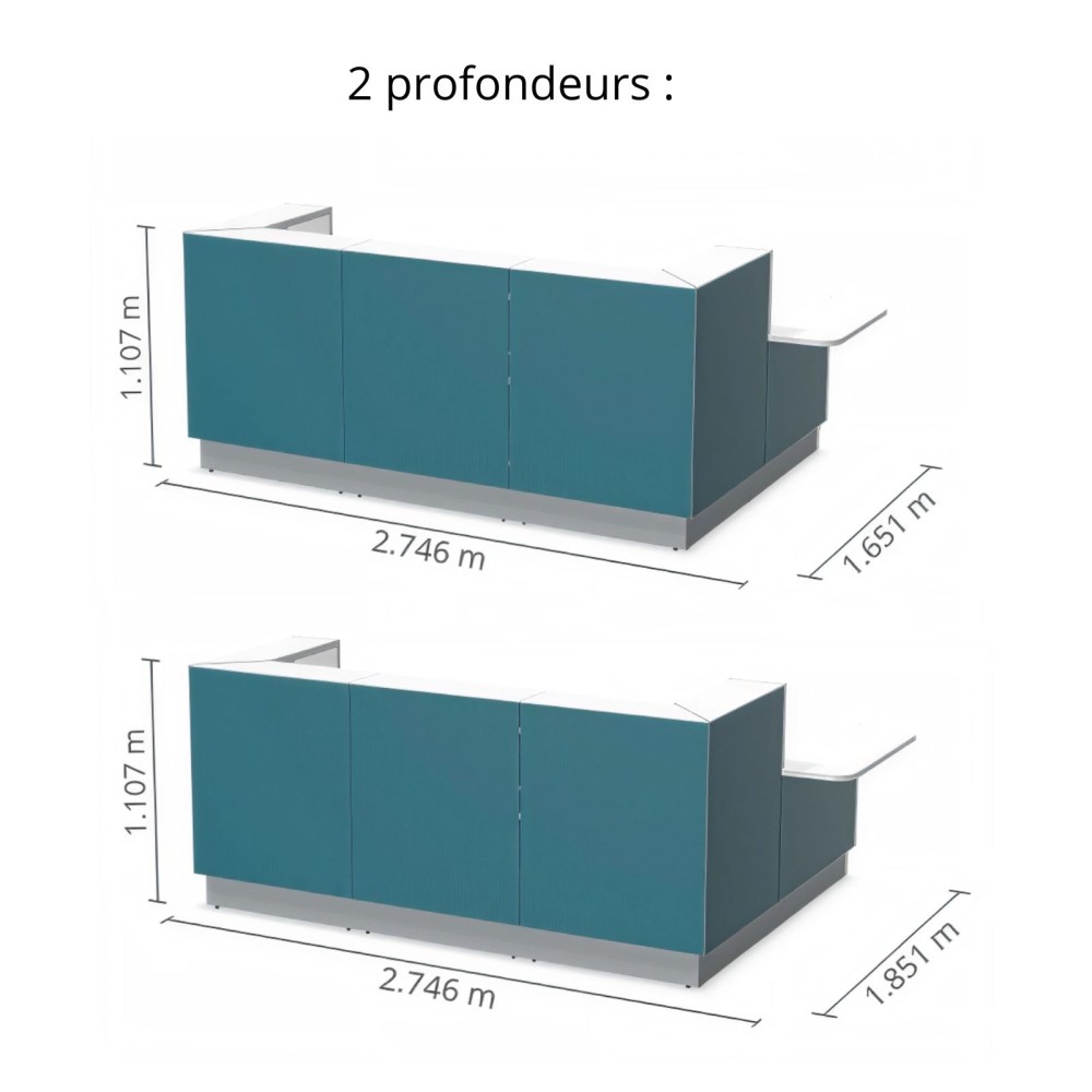 Meuble de réception avec module bas sur le côté et tablette intégrée