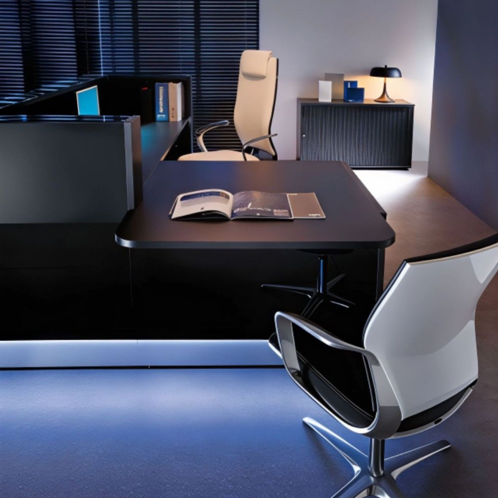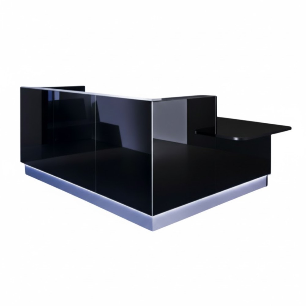 Banque d'accueil noire ave led intégrée et module bas sur l'un des côtés