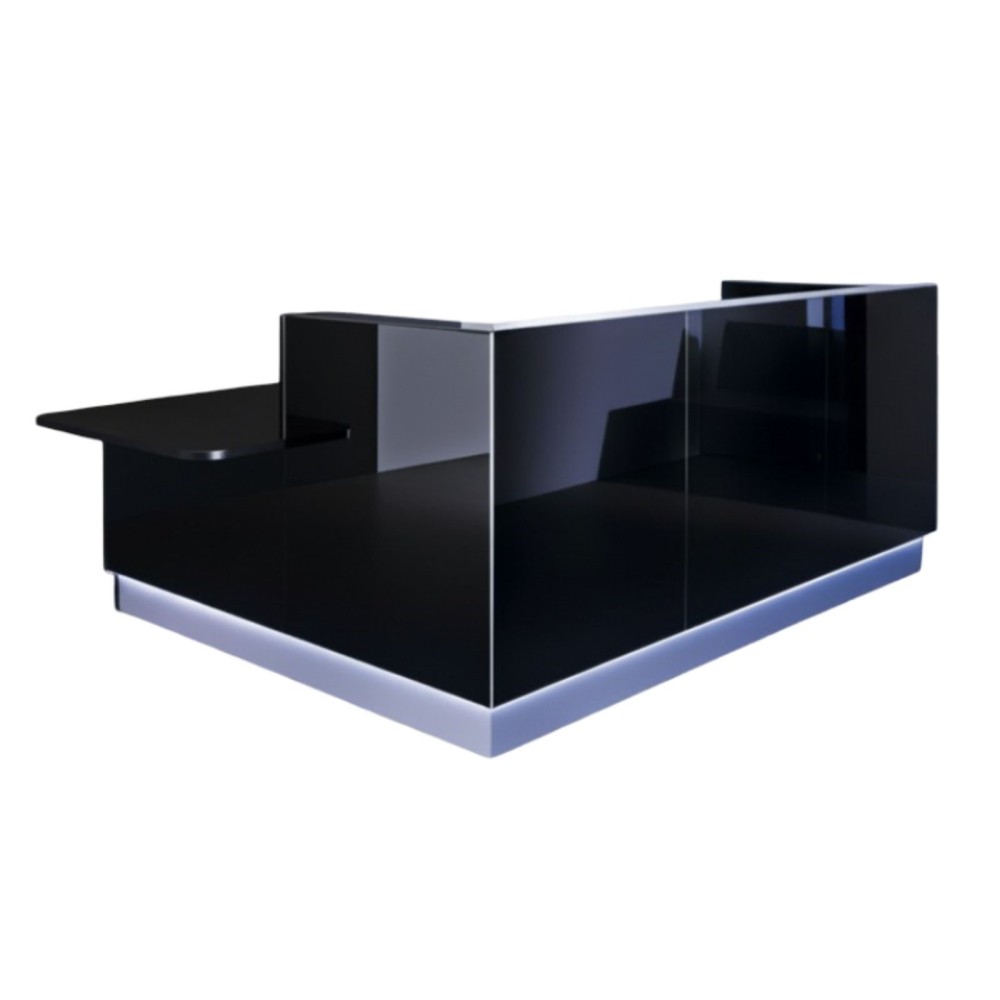 La banque d’accueil Linea allie design épuré, accessibilité et praticité. Ce modèle intègre un angle avec module bas et tablette intégrée, disponible à gauche ou à droite selon ton espace. Idéal pour l’accessibilité des personnes à mobilité réduite, il conserve toute l’élégance de la façade en verre et de l’éclairage LED intégré.