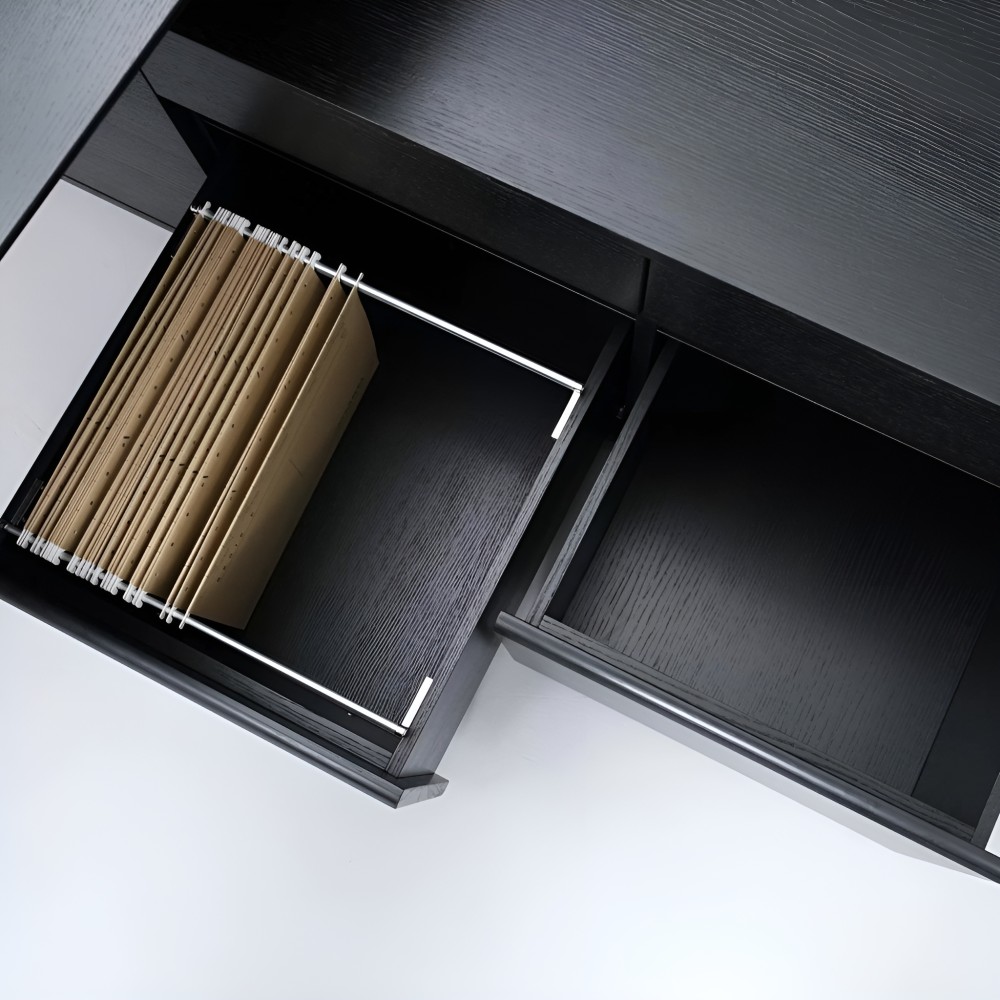 Le bureau peut être équipé d’un caisson fixe positionné à gauche ou à droite, selon la configuration choisie :