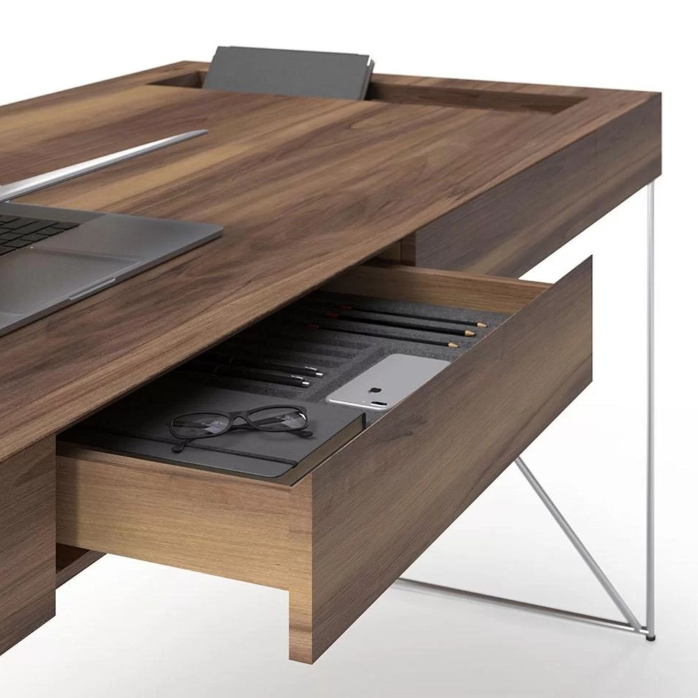 Les pieds en acier sont conçus pour masquer toute la gestion des câbles. Ton espace de travail reste propre, ordonné et visuellement dégagé, idéal pour un bureau de direction professionnel.