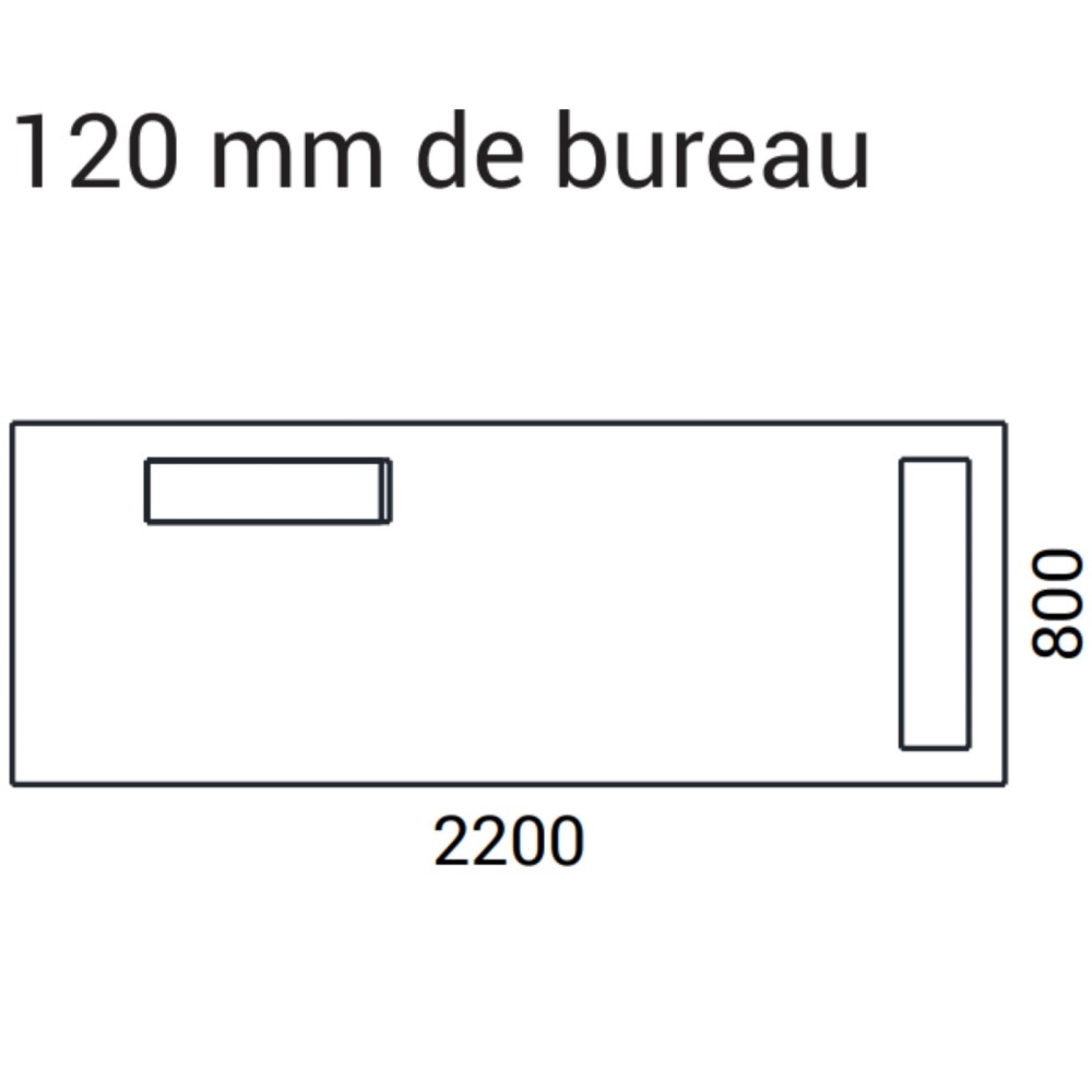 - Version 1 : boîtier électrique intégré (à gauche), 2 tiroirs à documents et 1 tiroir à crayons – 2200 x 800 mm, hauteur 780 mm