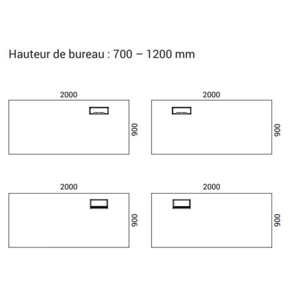 - Plateau : 2000 x 900 mm (standard)