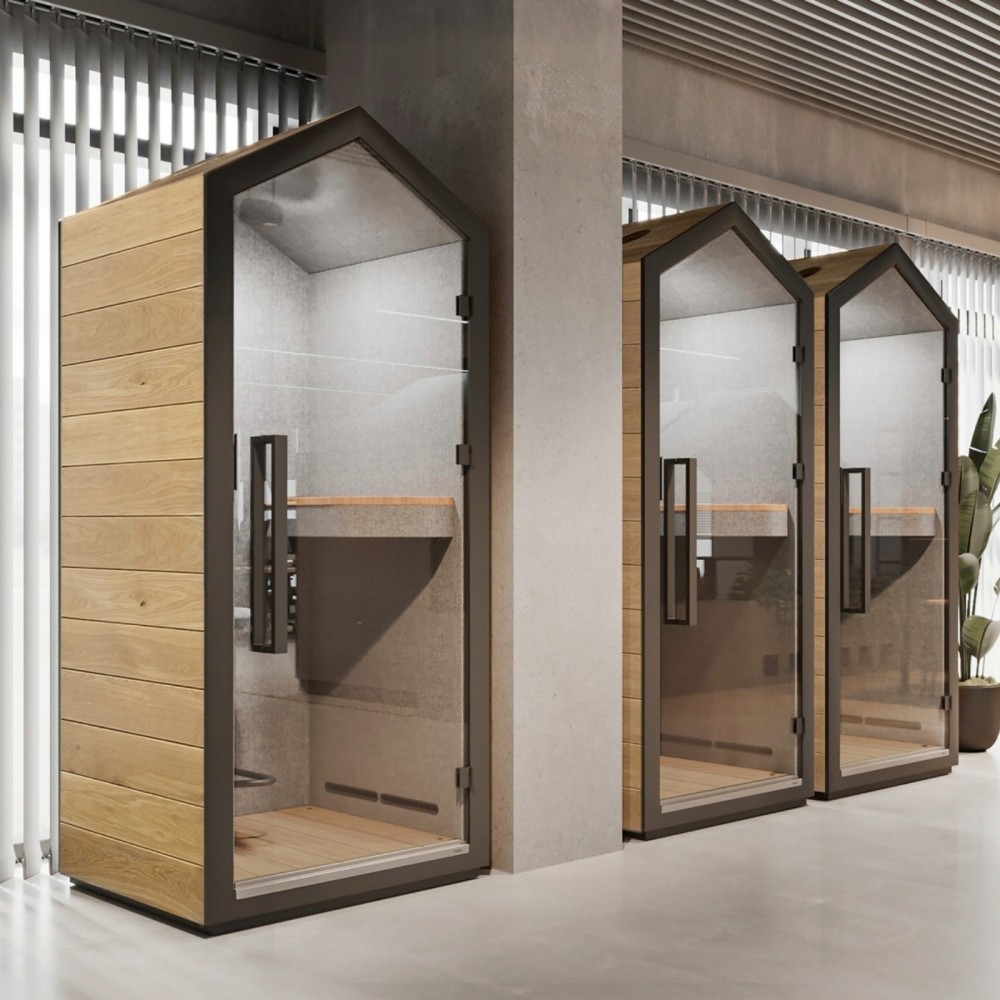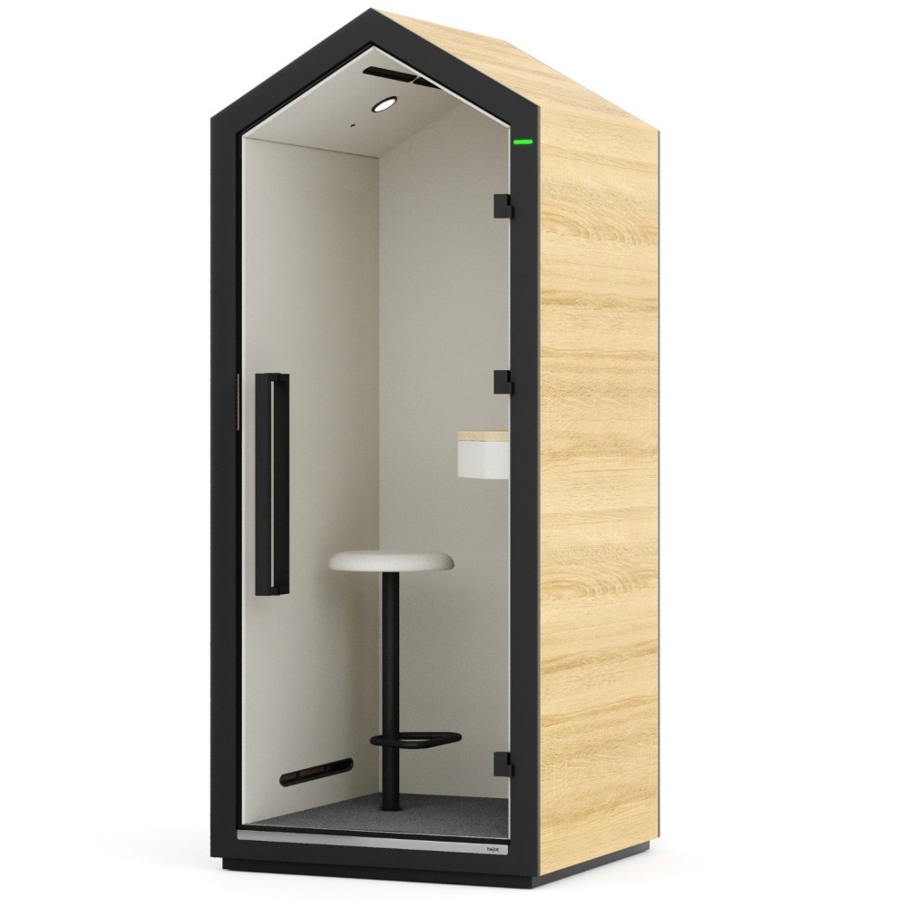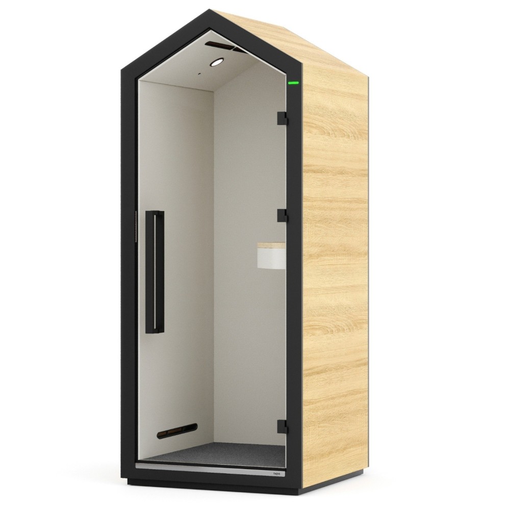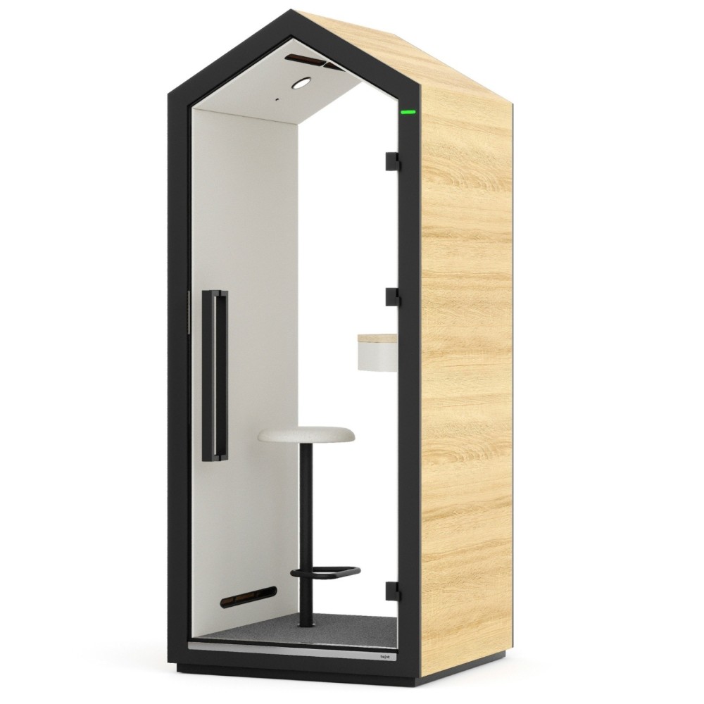 La cabine acoustique Treehouse est une solution de pointe pour instaurer un espace calme et confidentiel au sein de ton environnement de travail. Grâce à son acoustique certifiée, sa ventilation silencieuse et son design chaleureux, elle améliore significativement le confort, la concentration et la qualité des échanges en entreprise.