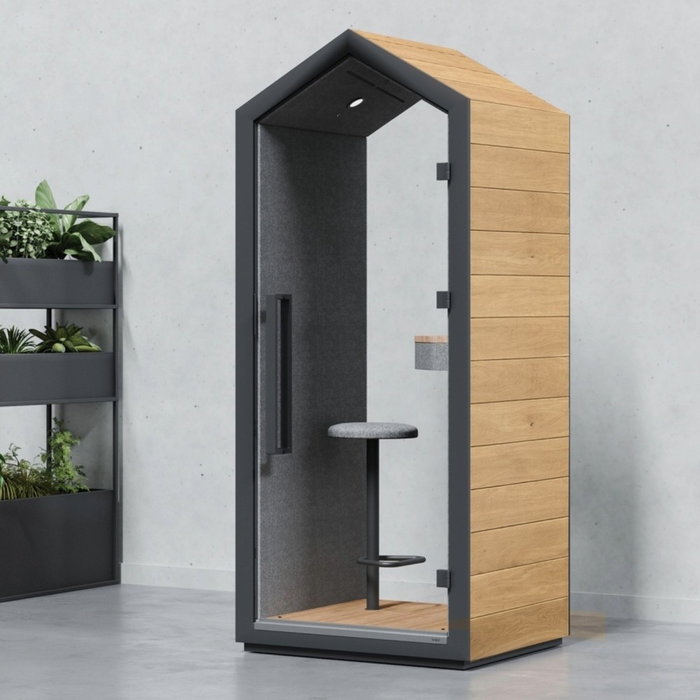 La Treehouse est une cabine acoustique individuelle pensée pour t’offrir un espace calme, privatif et ergonomique au cœur des bureaux ouverts. Son design iconique en forme de petite maison apporte une touche chaleureuse et contemporaine, tout en garantissant une isolation acoustique remarquable. Elle constitue une solution idéale pour passer tes appels téléphoniques, participer à des visioconférences ou t’isoler pour réfléchir, loin du bruit ambiant.