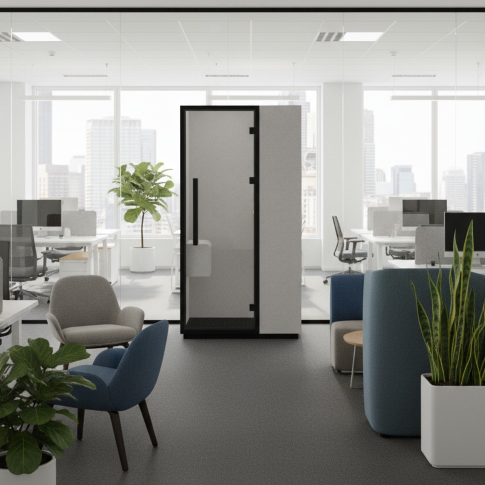 La Quadra Standing Box est une cabine acoustique individuelle conçue pour offrir un espace de concentration et de confidentialité au cœur des bureaux animés. Idéale pour les appels téléphoniques, les visioconférences ou les moments nécessitant une totale tranquillité, elle assure un confort d’utilisation exceptionnel grâce à son design ergonomique et à ses hautes performances acoustiques.