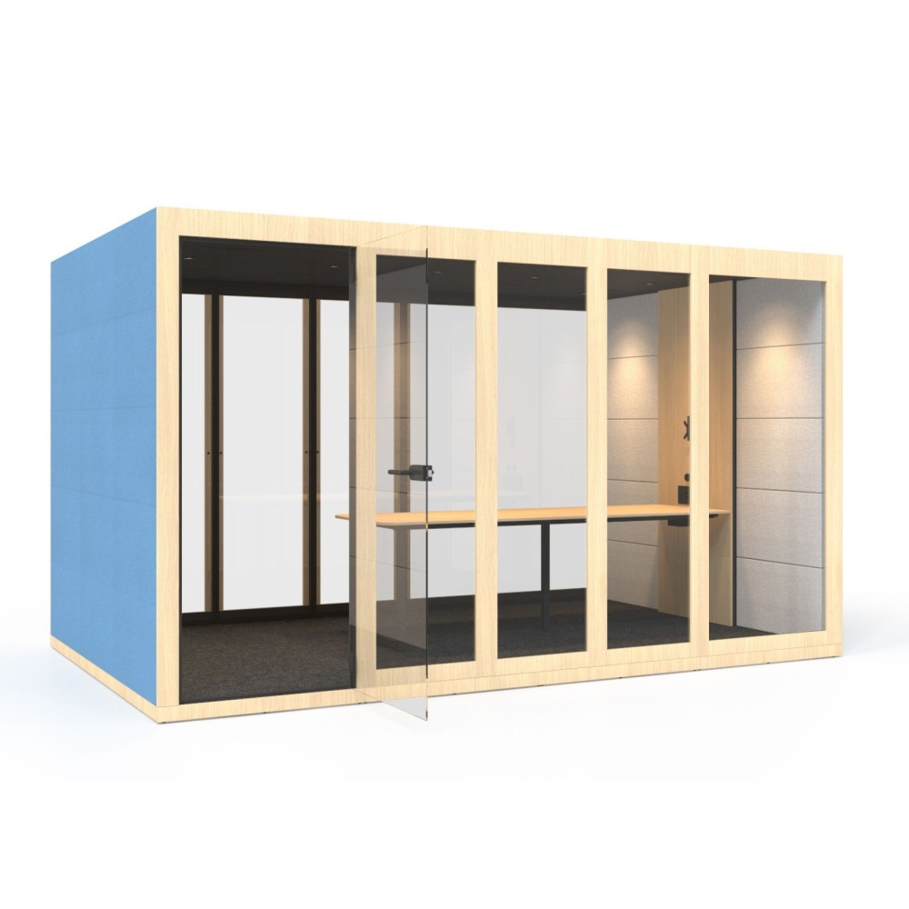 La SILENT ROOM XL est une cabine acoustique spacieuse conçue pour accueillir jusqu’à 8 personnes. Elle offre un espace silencieux et confortable, idéal pour les réunions formelles, les brainstormings ou les visioconférences sans être dérangé(e) par le bruit ambiant.