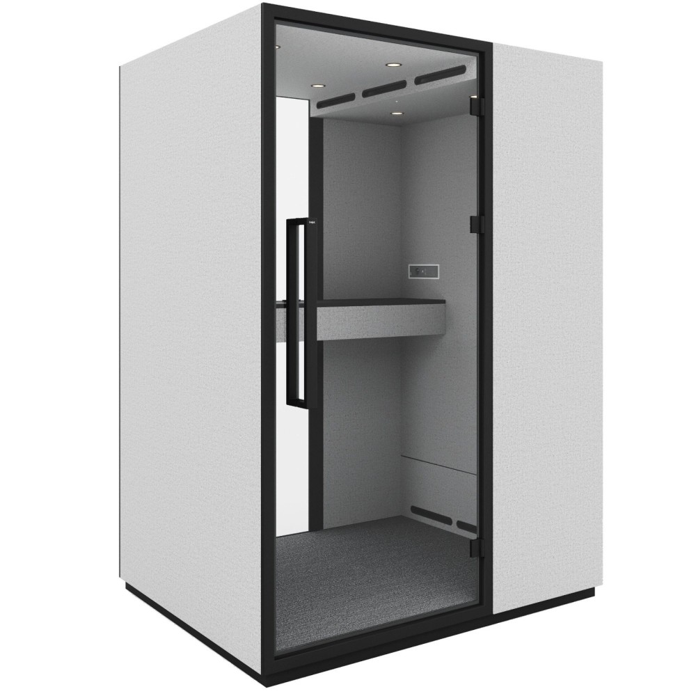 Grâce à ses parois insonorisées et à sa porte vitrée en verre feuilleté et trempé acoustique, la Quadra Standing Box XL atteint un indice d’isolation Rw = 38 dB, conforme aux normes EN ISO 10140 et ISO 717-1. Cette performance garantit la confidentialité de vos échanges et élimine les nuisances sonores extérieures.