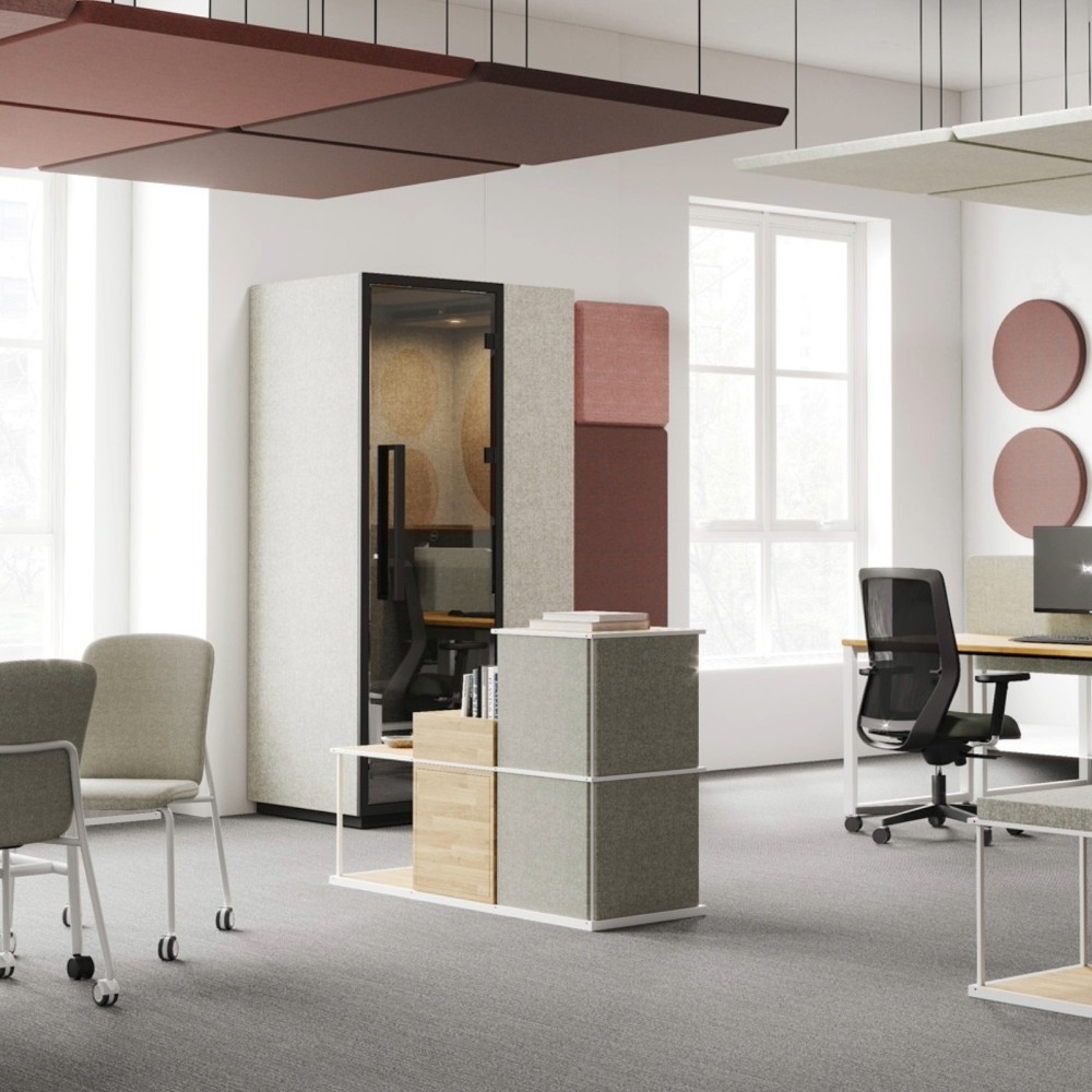 Avec ses parois tapissées de tissu acoustique haute performance, son design minimaliste et ses finitions soignées, la cabine s'intègre harmonieusement dans les open spaces contemporains, les espaces de coworking et les bureaux premium.