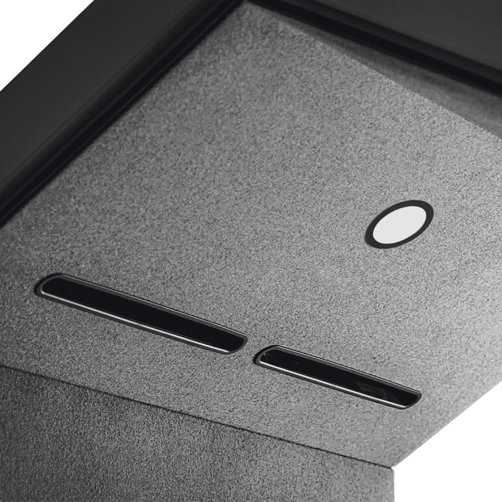 L’éclairage LED intégré, doux et écoénergétique, est réglable selon tes besoins. Il crée un espace lumineux et agréable, adapté pour lire, noter ou consulter ton smartphone. Un détecteur de mouvement active automatiquement lumière et ventilation lorsque tu entres dans la cabine et les coupe quelques instants après ton départ, ce qui optimise la consommation d’énergie et garantit un cycle d’aération complet entre deux utilisations.