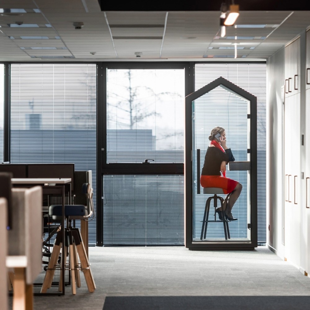 La Treehouse est une cabine acoustique individuelle conçue pour offrir un espace calme, confidentiel et isolé au cœur des bureaux ouverts. Idéale pour les appels téléphoniques, les conversations sensibles ou les réunions rapides en visioconférence, elle réduit considérablement les nuisances sonores et améliore le confort acoustique global de ton environnement professionnel. Grâce à sa forme distinctive inspirée des cabanes traditionnelles, elle apporte une touche chaleureuse et contemporaine à n’importe quel espace de travail.
