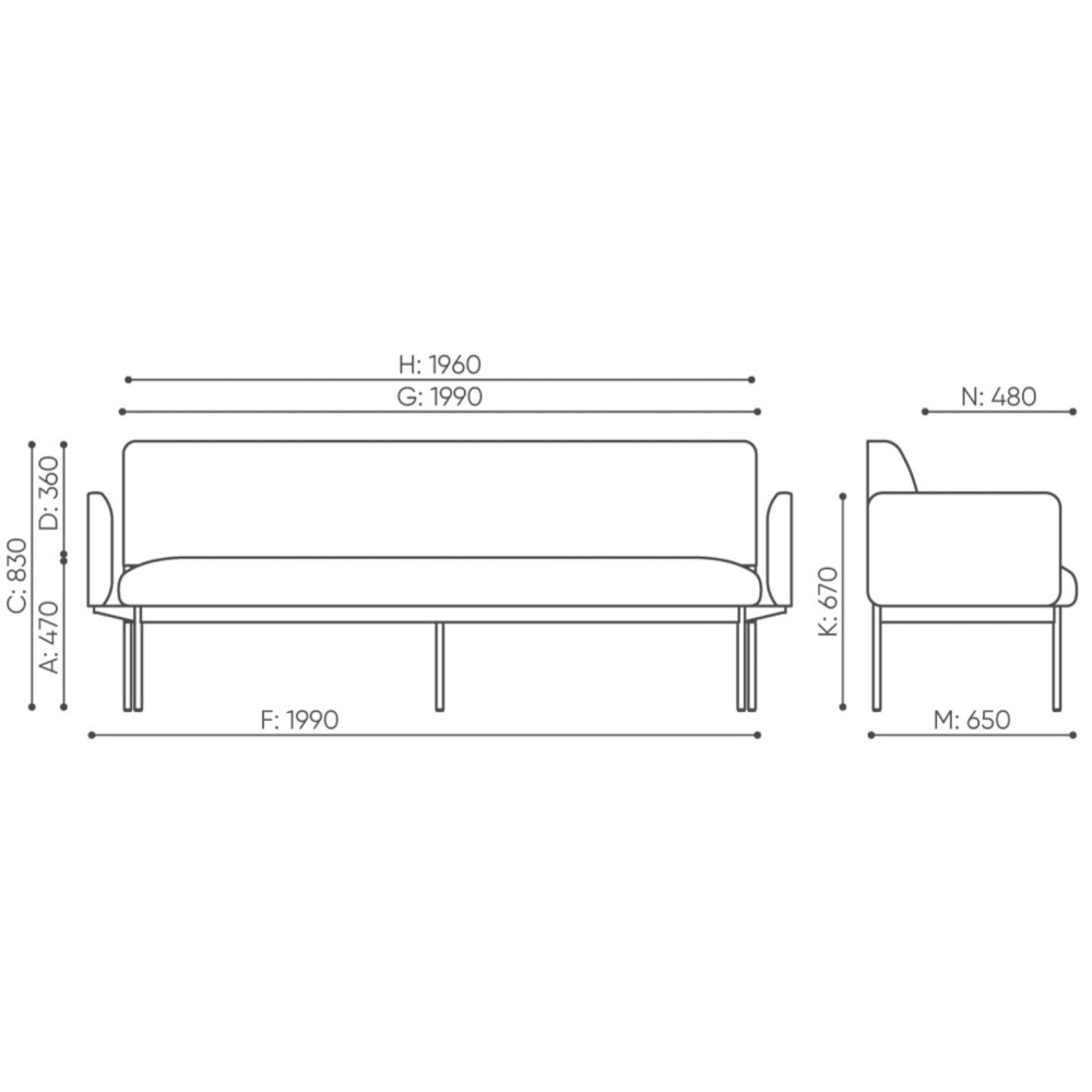 Sa structure métallique robuste garantit solidité et longévité. Le revêtement en tissu, disponible dans une large gamme de coloris, est résistant et agréable au toucher. En option, le canapé peut être équipé de prises électriques ou USB afin de répondre aux besoins des espaces collaboratifs modernes.