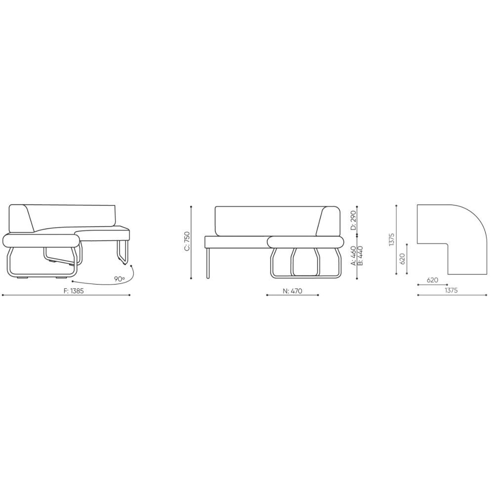 La collection Legvan est reconnue pour sa modularité. Grâce à ce module 90°, vous pouvez composer librement votre espace selon les besoins : zones d’attente dynamiques, salons collaboratifs ou coins lounge modernes.