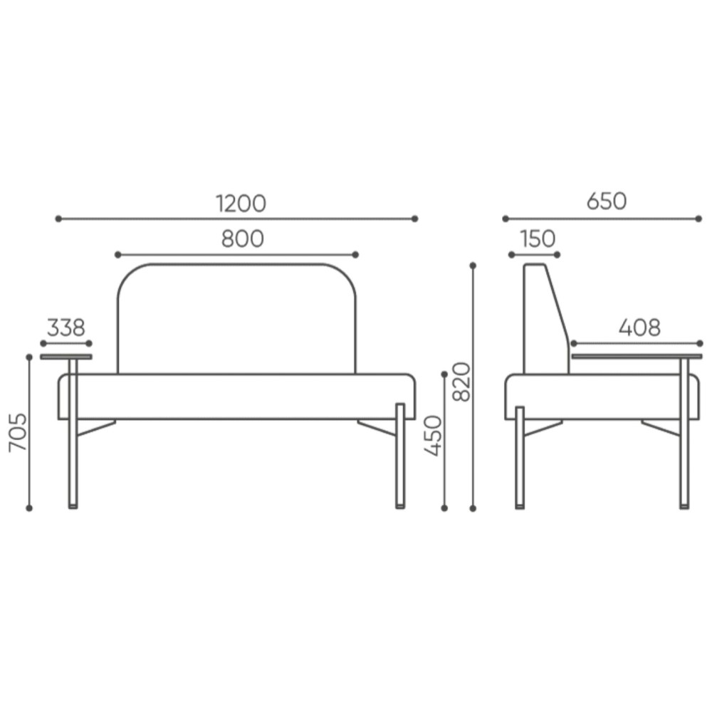 Son assise généreuse et son dossier ergonomique (optionnel) apportent un soutien agréable au quotidien. Les accoudoirs rembourrés renforcent le confort, tandis que la hauteur d’assise de 45 cm est parfaitement adaptée aux espaces lounge et salles d’attente.