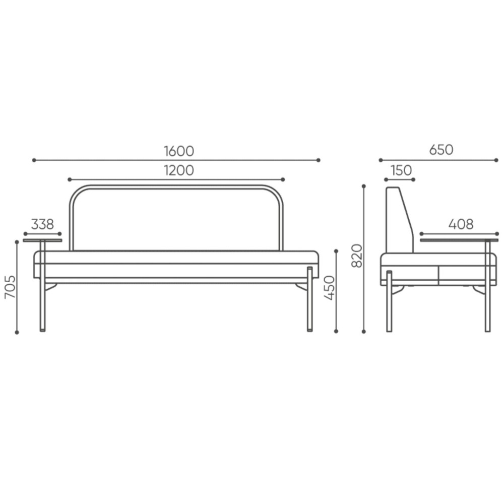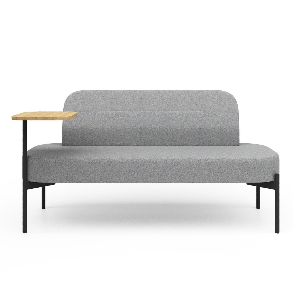 Sa base en acier laqué assure une grande stabilité et une durabilité adaptée à un usage professionnel. Trois coloris RAL sont disponibles pour harmoniser le canapé avec le reste de ton aménagement. Les éléments en bois de frêne ajoutent une touche chaleureuse qui adoucit les environnements techniques, notamment dans les services IT, les administrations et les entreprises du bâtiment.