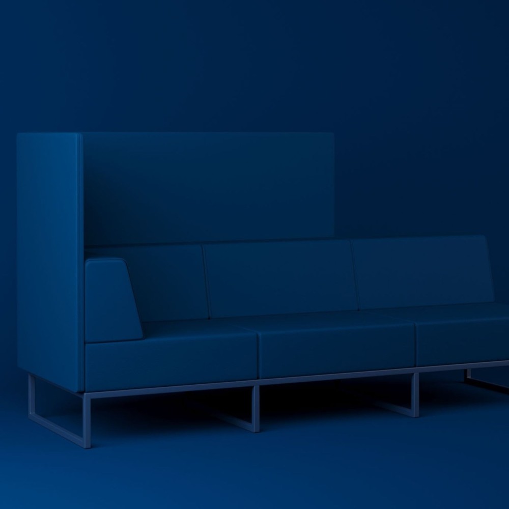 Ce modèle trois places avec panneau acoustique illustre l’essence même de la collection Plint : un équilibre parfait entre design, confort et modularité.