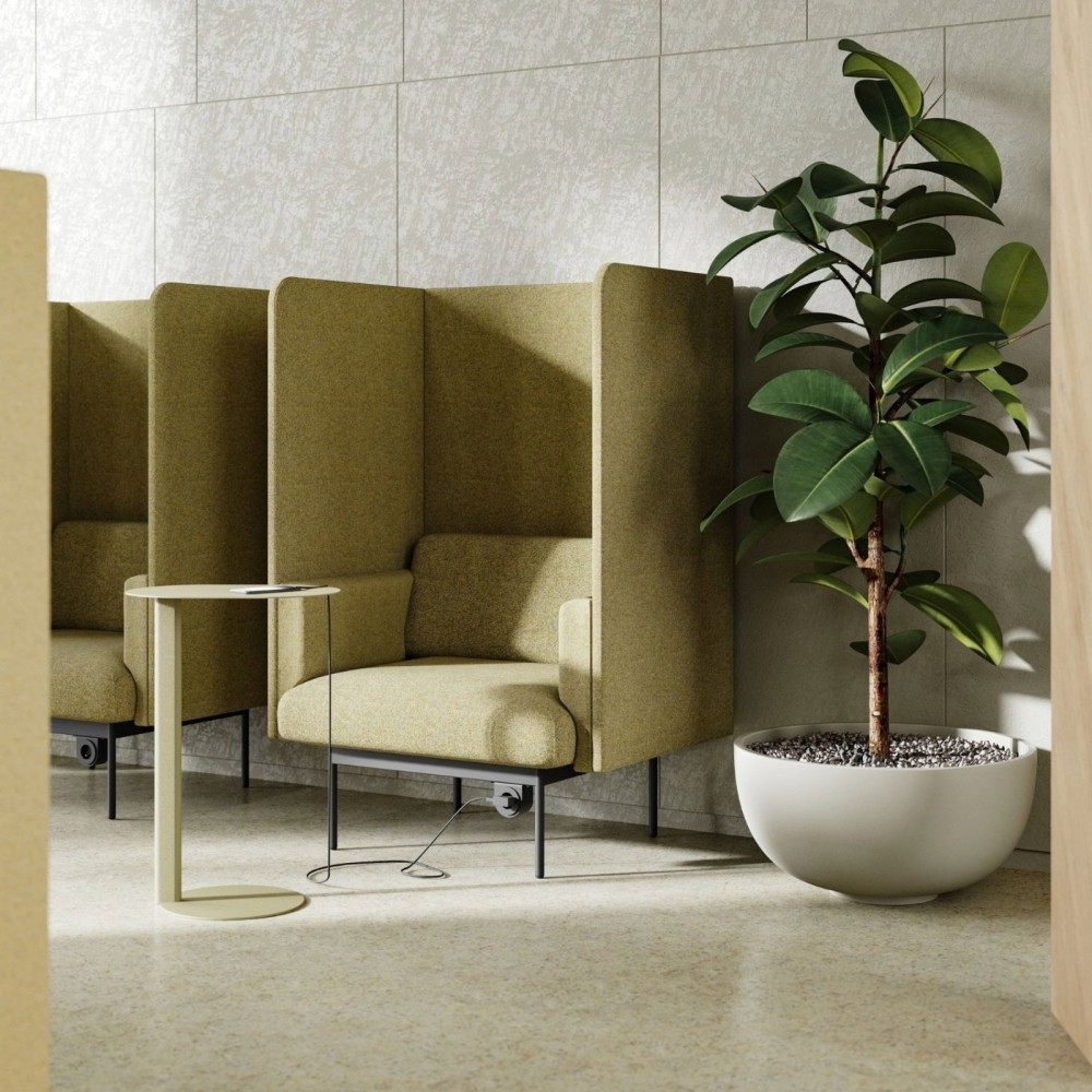 Doté d’une mousse haute densité, d’un dossier haut et d’accoudoirs enveloppants, le Fora Office acoustique assure un confort durable. Ses cloisons latérales et arrière tapissées forment une barrière naturelle contre le bruit ambiant, offrant un espace personnel propice à la concentration ou à une conversation confidentielle. Le revêtement doux et la géométrie fluide renforcent la sensation de bien-être et de calme.