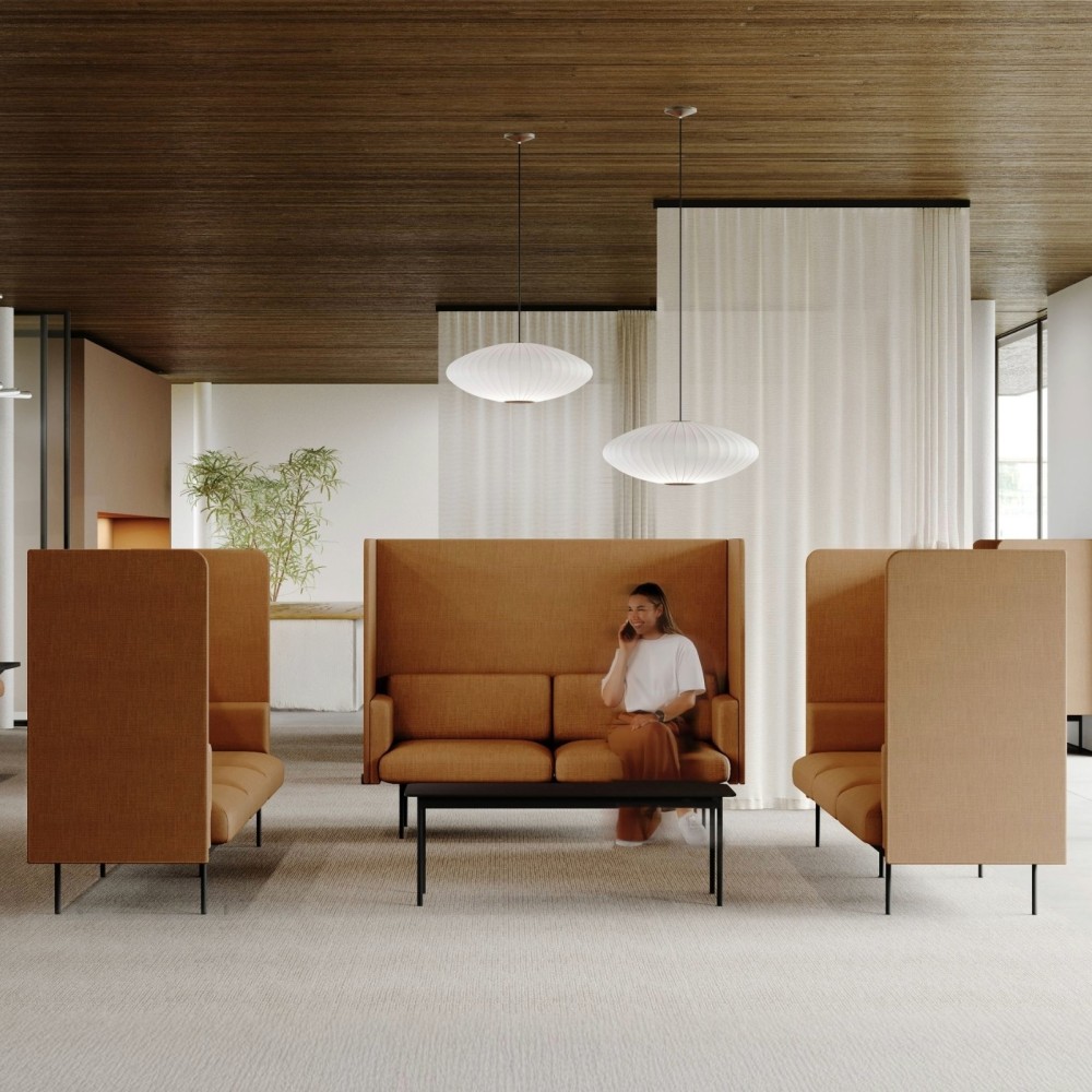 Le canapé acoustique deux places Fora Office associe confort, intimité et design contemporain. Pensé pour les environnements ouverts, il intègre des parois hautes tapissées qui offrent une isolation acoustique naturelle, parfaite pour les réunions informelles ou les moments de détente à deux. Sa silhouette épurée et ses lignes équilibrées apportent une touche de modernité aux espaces de travail collaboratifs ou d’accueil.