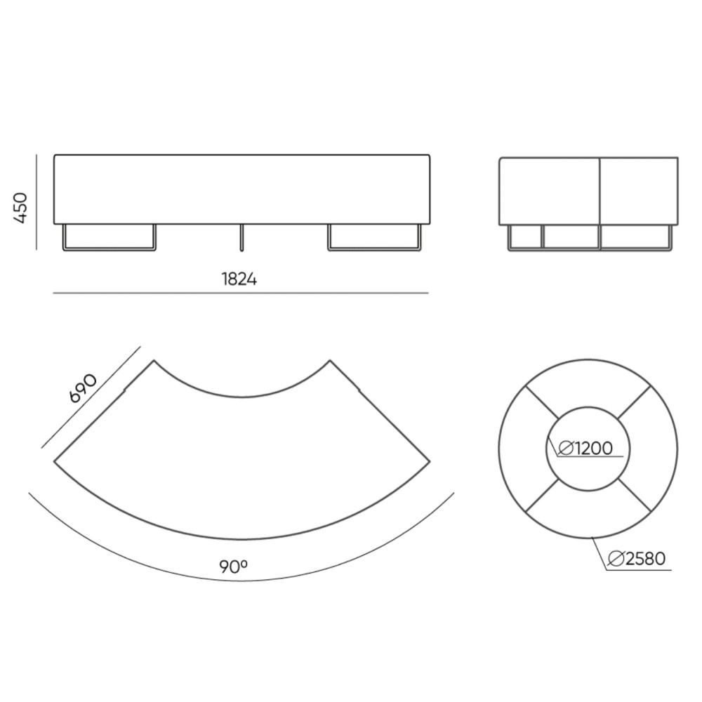Conçue pour compléter la gamme Quadra, cette banquette 90° offre une liberté d’aménagement totale. Seule, elle crée une assise originale et conviviale ; associée à d’autres modules, elle permet de composer des configurations circulaires, semi-ouvertes ou linéaires selon vos besoins. Sa courbure douce apporte mouvement et harmonie visuelle à chaque espace.