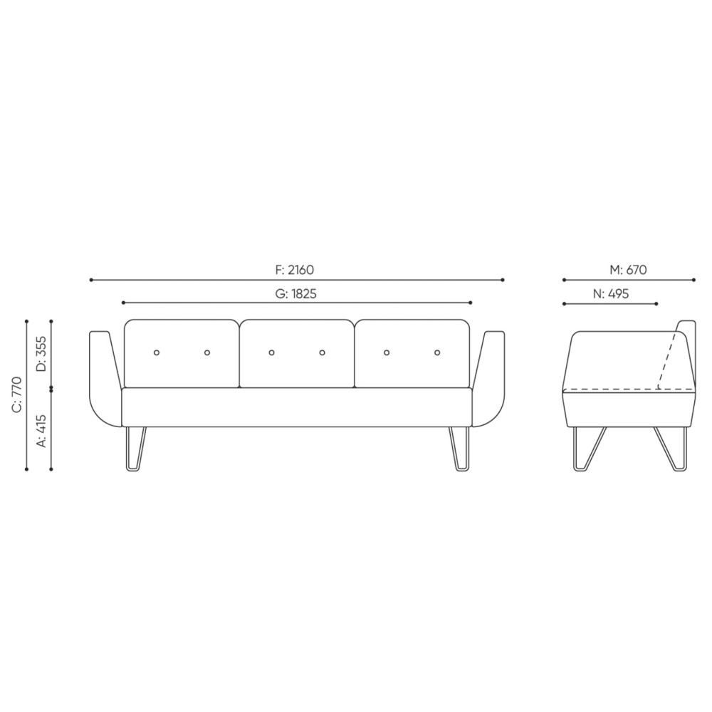 Son assise moelleuse en mousse haute densité offre un confort durable, tandis que sa structure en bois et métal garantit stabilité et longévité. Le piètement, disponible en bois naturel ou en métal fil noir, confère une touche contemporaine et élégante. Les boutons capitonnés sur les dossiers ajoutent une note subtile de sophistication.