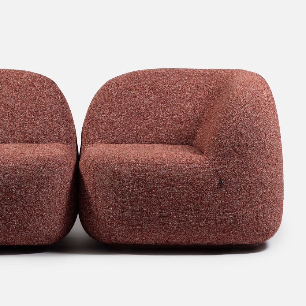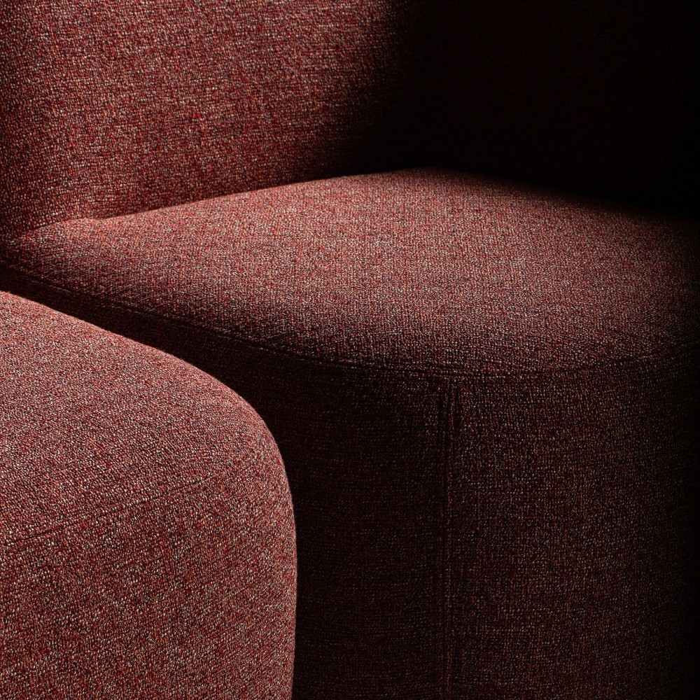 Fauteuil arrondi en tissu bouclé rouge brique. - Jelly