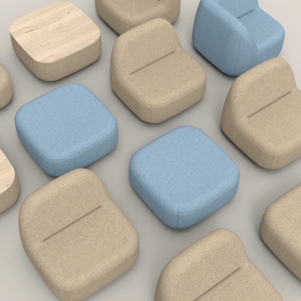 Le pouf Jelly peut être utilisé seul ou combiné à d’autres modules de la collection pour créer un ensemble d’assises sur mesure. Il s’adapte parfaitement aux compositions modulaires de la gamme, formant un tout cohérent et esthétique.