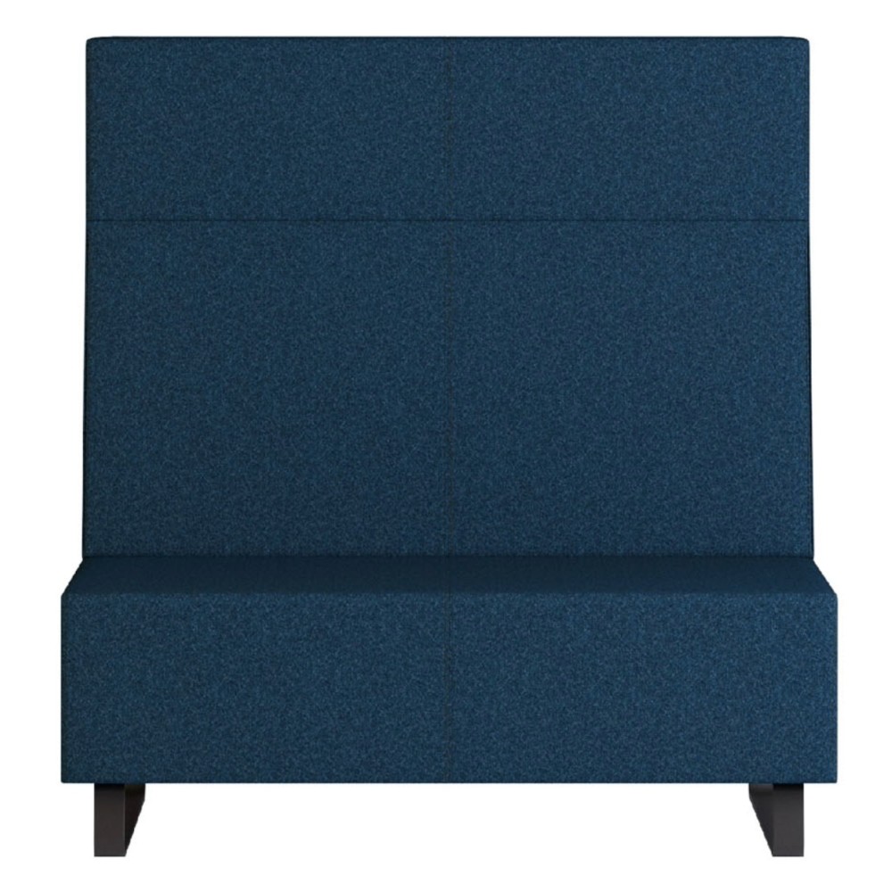 Le dossier haut tapissé offre un effet cocon acoustique en réduisant la réverbération sonore. L’assise en mousse haute densité garantit un confort durable et un maintien ergonomique, idéal pour des moments de détente ou d’échange.