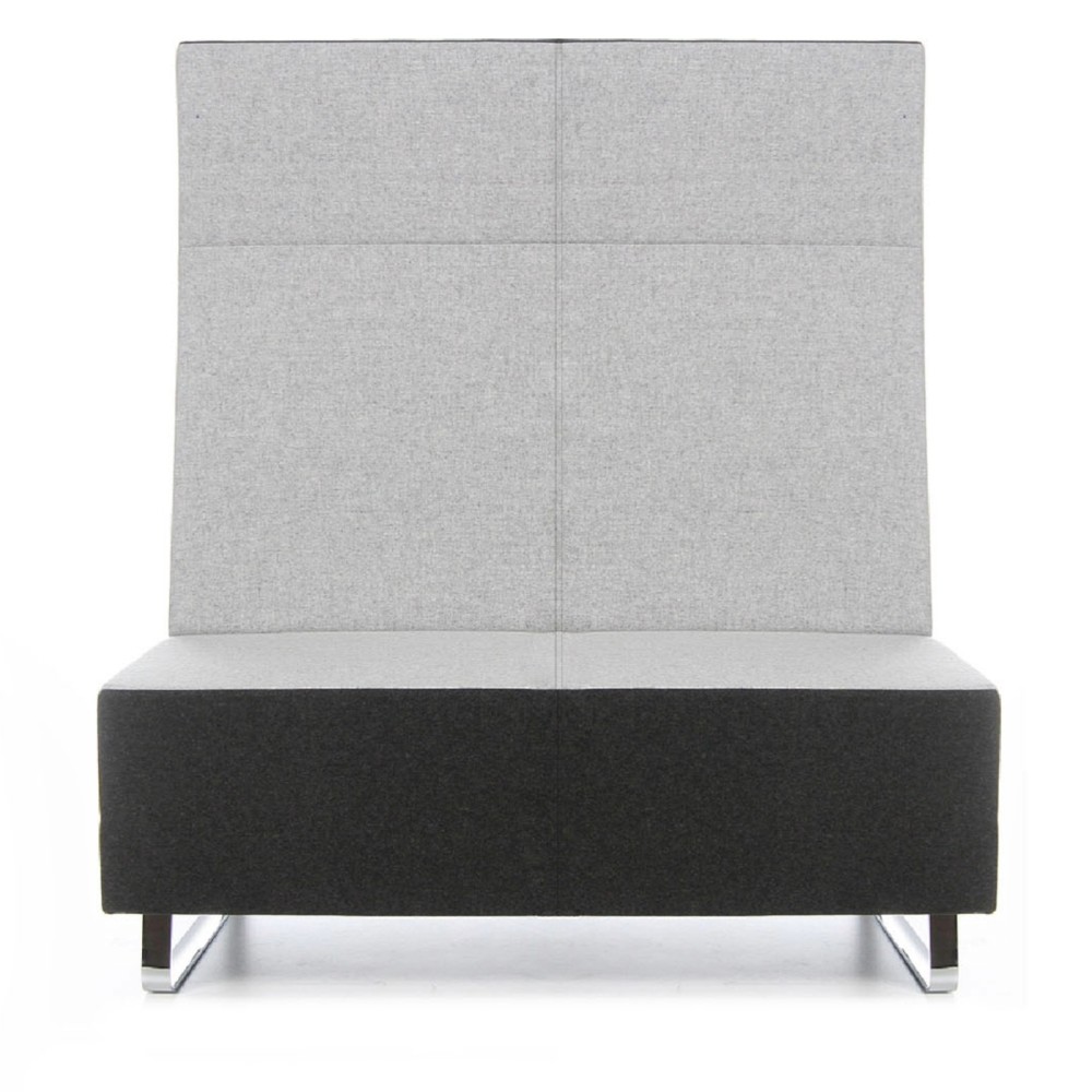 Avec ses lignes droites et sa silhouette architecturale, le Voo Voo 2 places haut s’impose par son allure sobre et harmonieuse. Son dossier tapissé, divisé en panneaux visuels réguliers, accentue son caractère design tout en apportant une impression de légèreté.