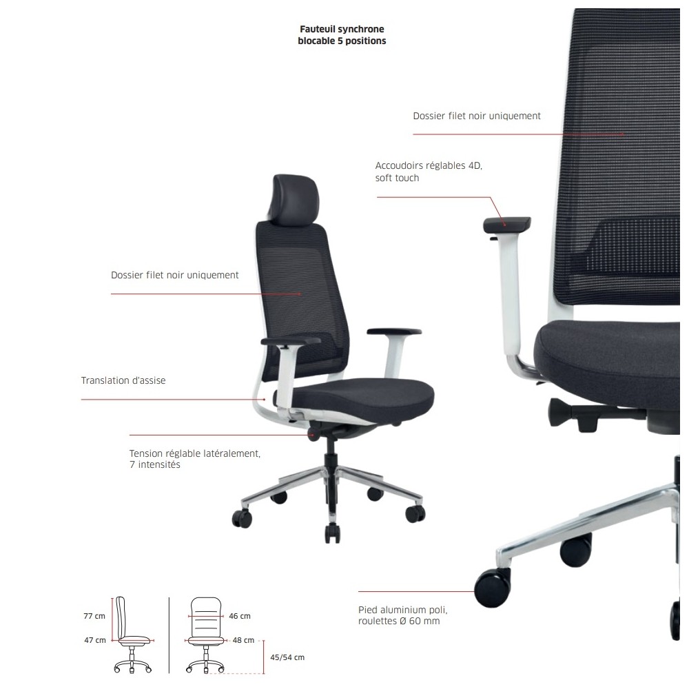 Fauteuil bureautique synchrone blocable 5 positions