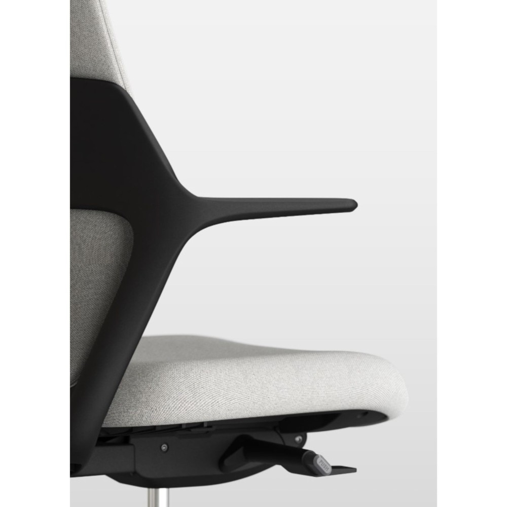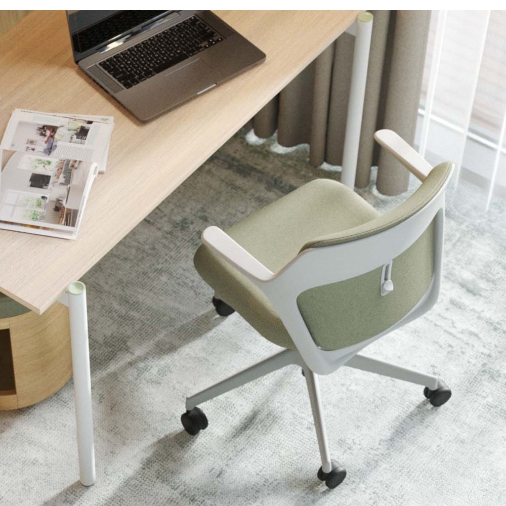 Avec une hauteur de dossier d’environ 355 mm, ce modèle OFY est idéal pour les utilisateurs recherchant un fauteuil discret visuellement, qui facilite les échanges, les mouvements rapides et l’agencement flexible des postes. Le rembourrage souple épouse naturellement le bas du dos, assurant un maintien confortable pendant les réunions ou les phases de travail alternées (assis - debout).