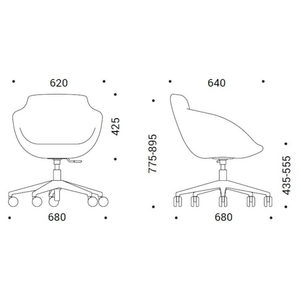 La forme enveloppante de la coque offre un excellent maintien du dos et une posture naturelle. L’assise rembourrée assure un confort durable, même en cas d’utilisation prolongée. La hauteur réglable de 435 à 555 mm permet d’ajuster la chaise à la morphologie et à la hauteur du bureau.