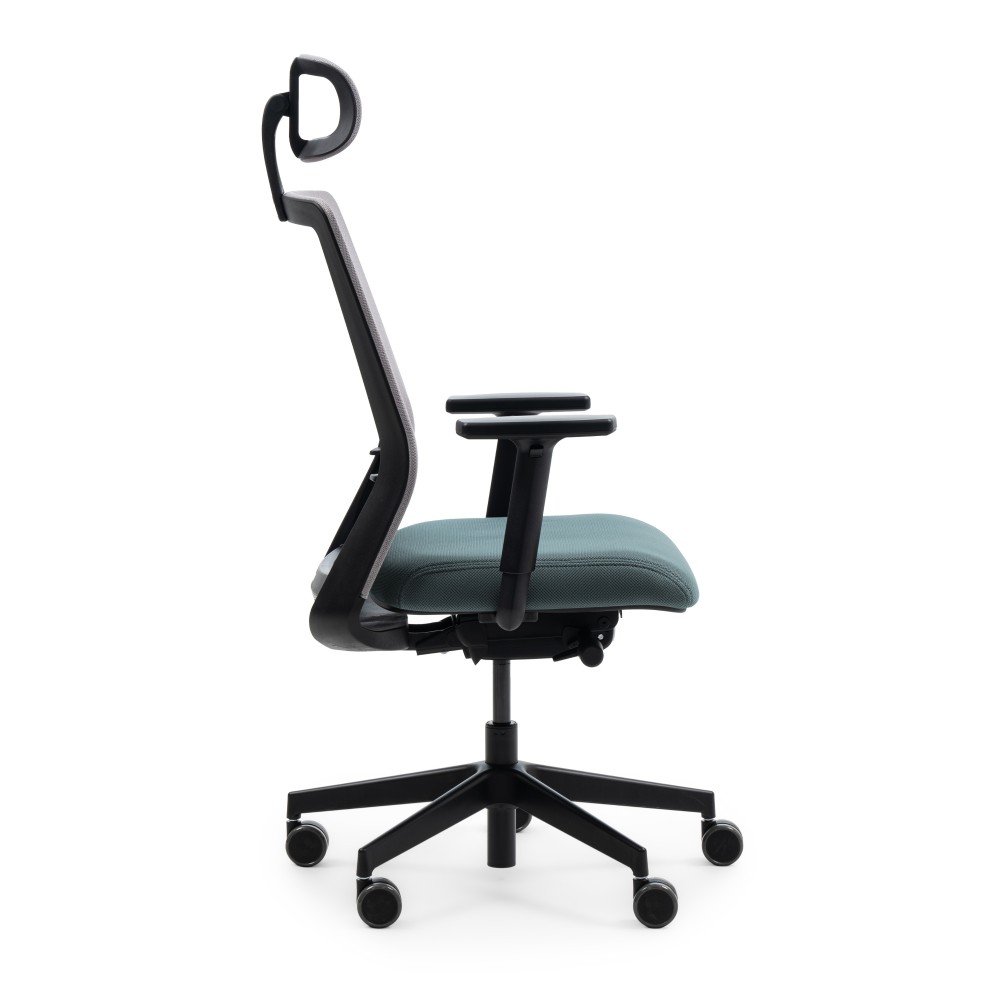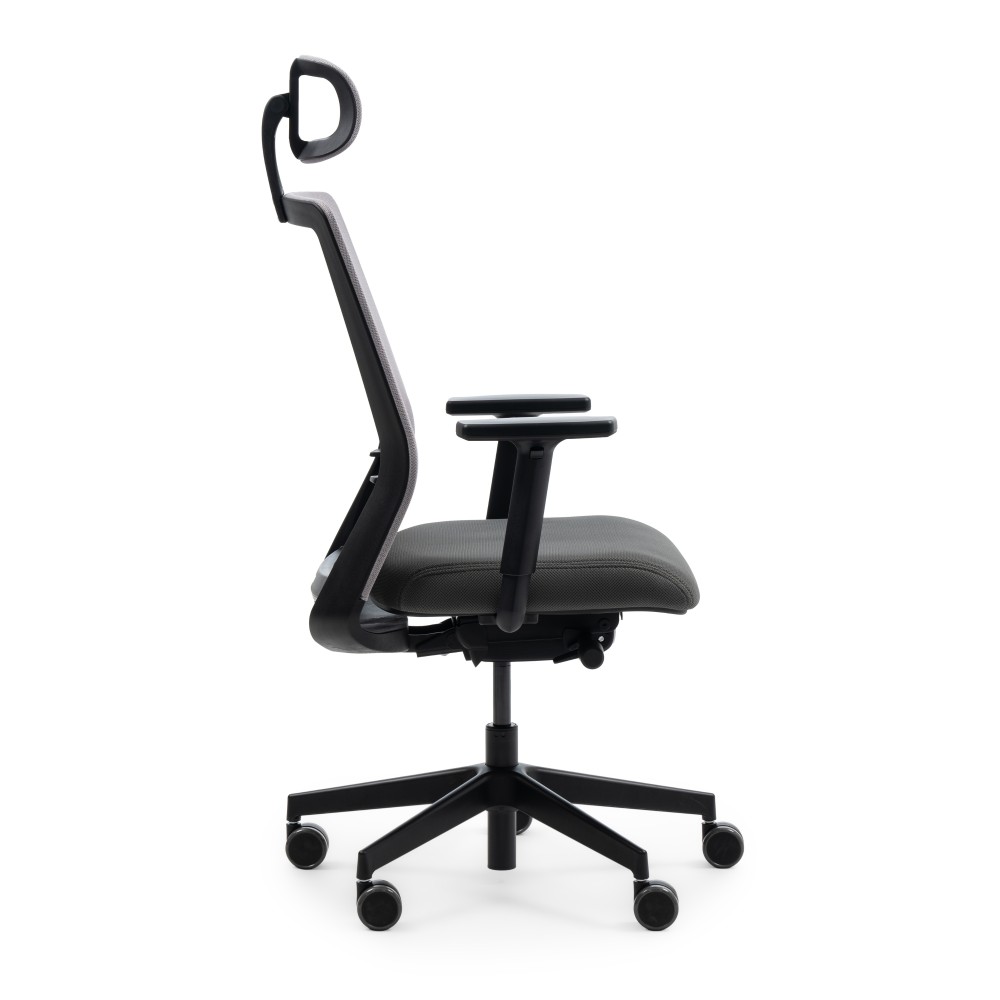 - Appui-tête : réglable en hauteur et en inclinaison, en résille aérée.