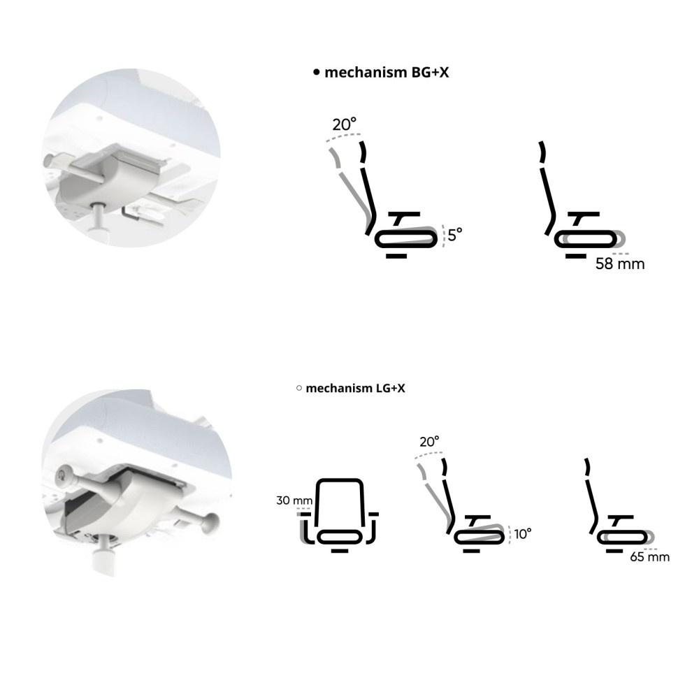 - Mécanisme synchrone BG+X auto-ajusté au poids de l’utilisateur.