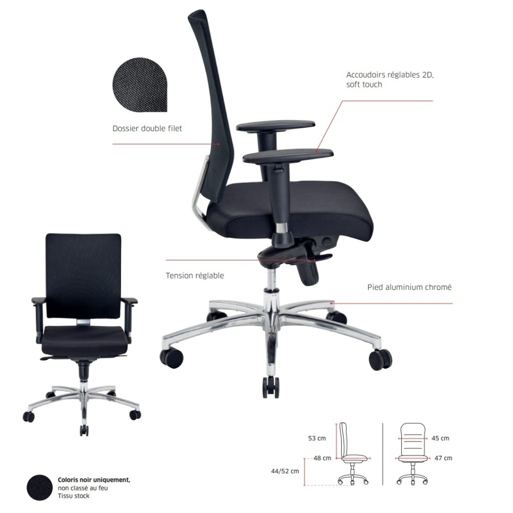 Chaise de travail avec têtière et dossier filet - Carlo