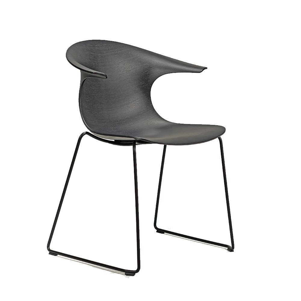 Chaise design pieds luge avec coque bois accoudoirs - Loop 3D Wood