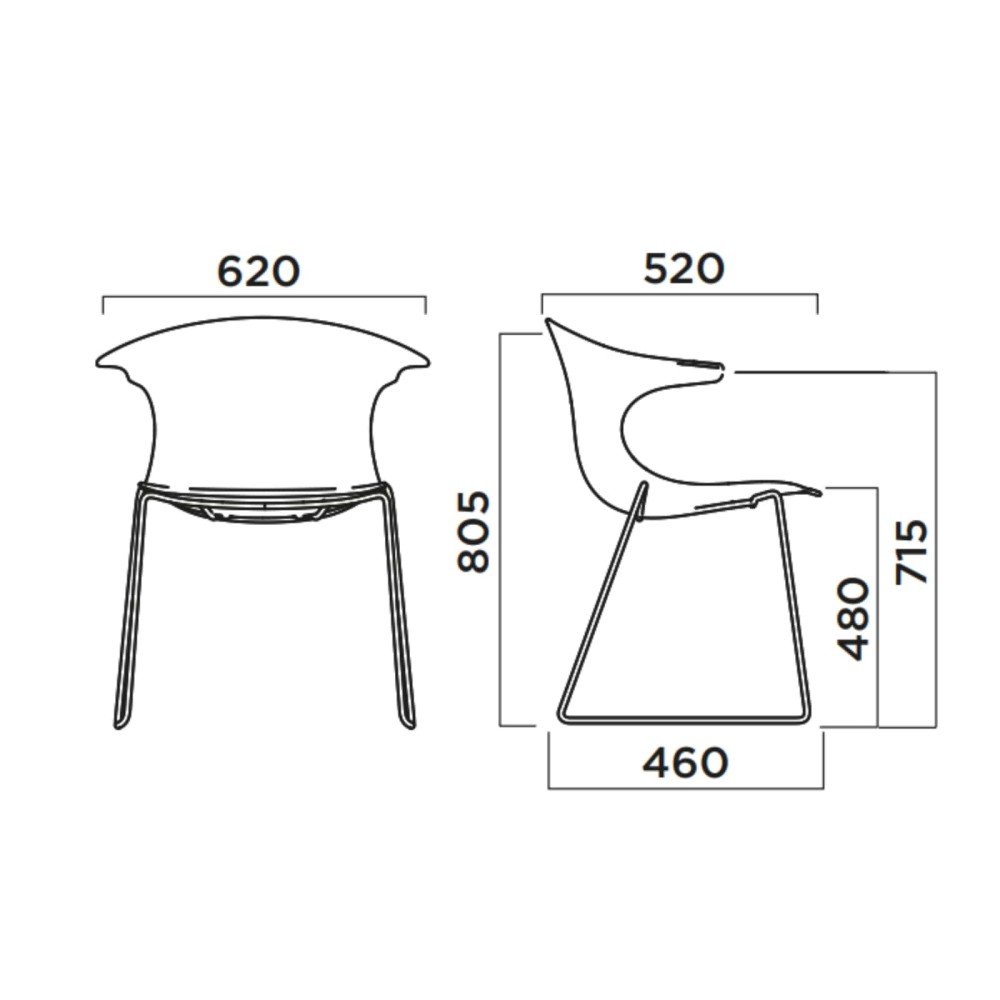 • Pieds traîneau en acier chromé ou peint (noir ou blanc selon modèle)