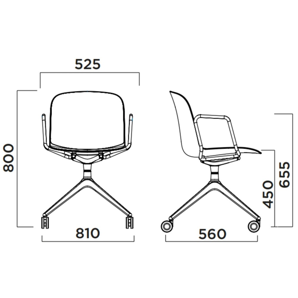 • Hauteur des accoudoirs : 655 mm
