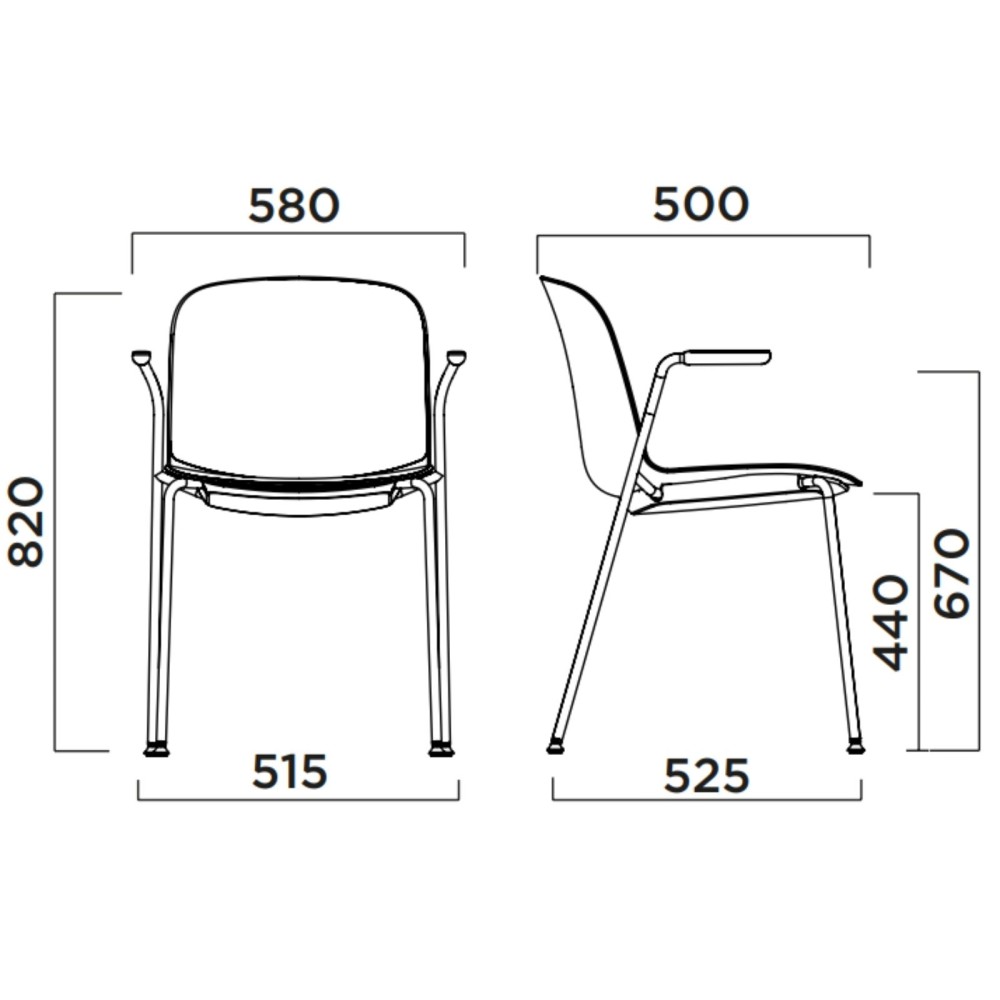 La chaise Relief avec accoudoirs ouverts et assise rembourrée combine ergonomie et légèreté. Elle apporte une solution confortable pour les environnements professionnels, sans alourdir visuellement l’espace.