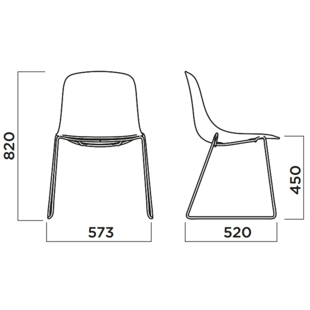 Dimensions chaise traîneau avec assise tissu et coque plastique Pure Loop Mono